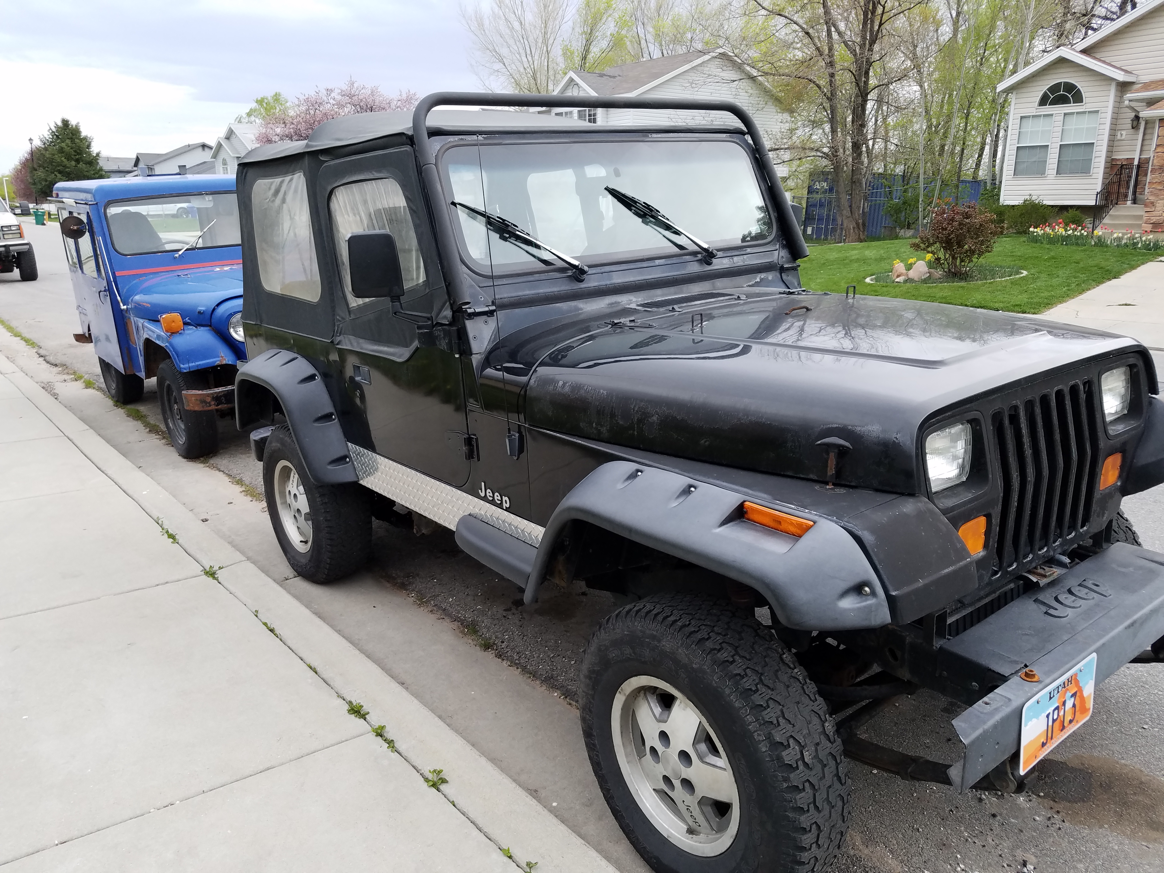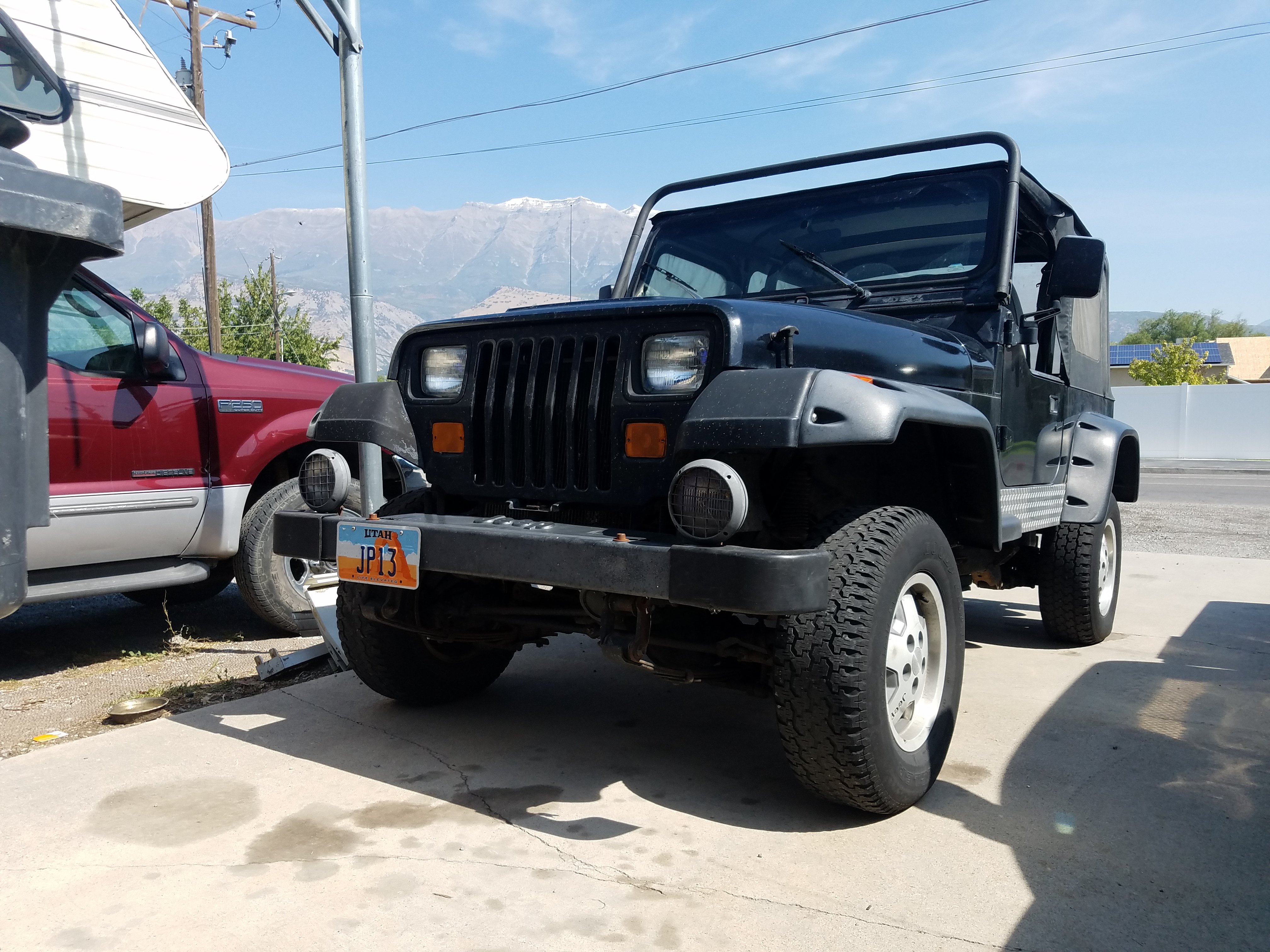 So an update since its been a while. The clutch internal slave went out on JP13 back in October so I got that replaced in December and have a jeep to drive again! Also I just picked up another set of wheels and tires for the jeep so I can start on the red wheel painting process! I mounted on the front bumper corner pieces and stock fog lights (not currently wired up yet) on the jeep looking better and better slowly! Also got some more stickers for the "cooler division" cooler i have with my jeep # on them thanks to Steve A on the facebook page.