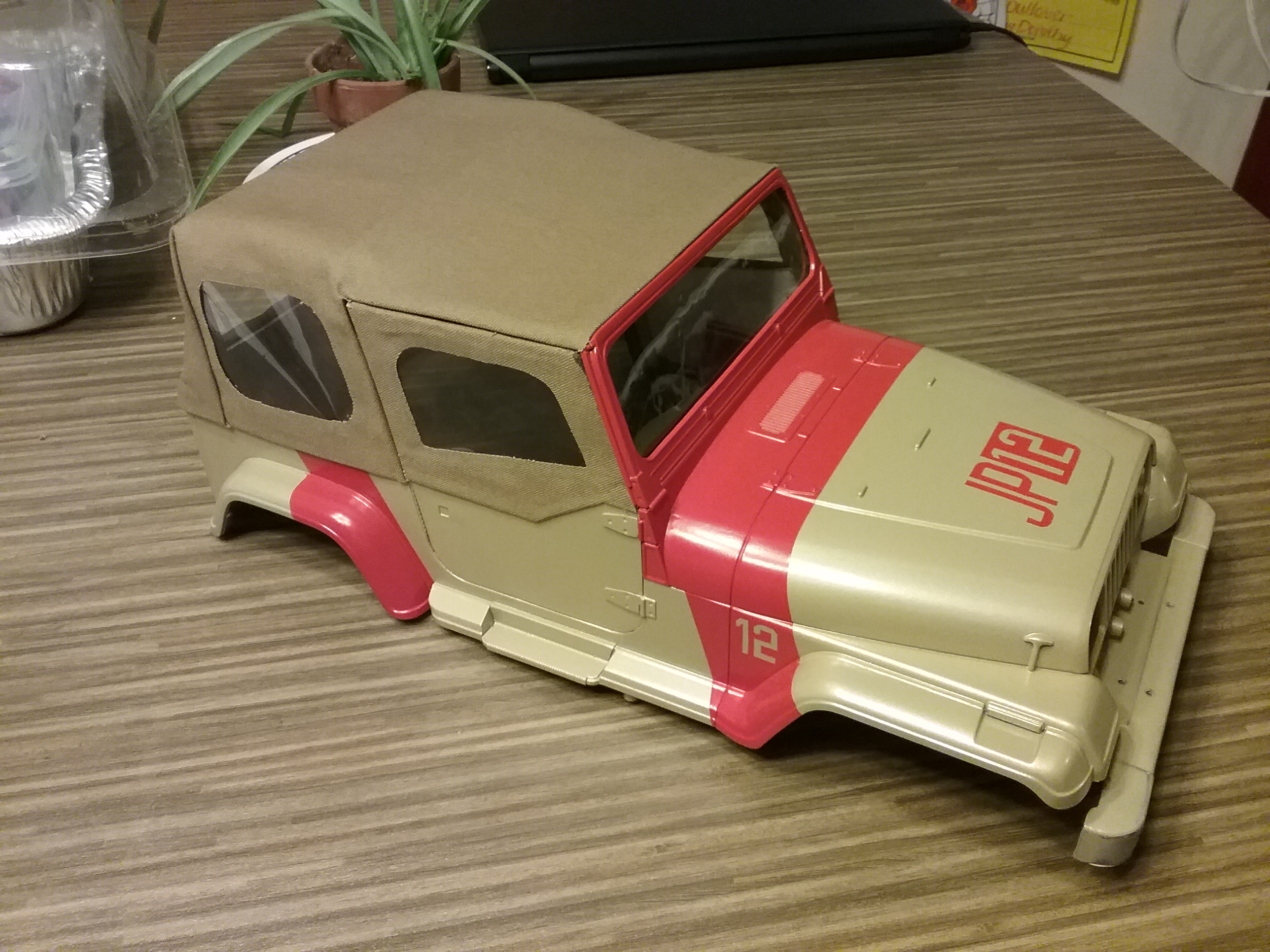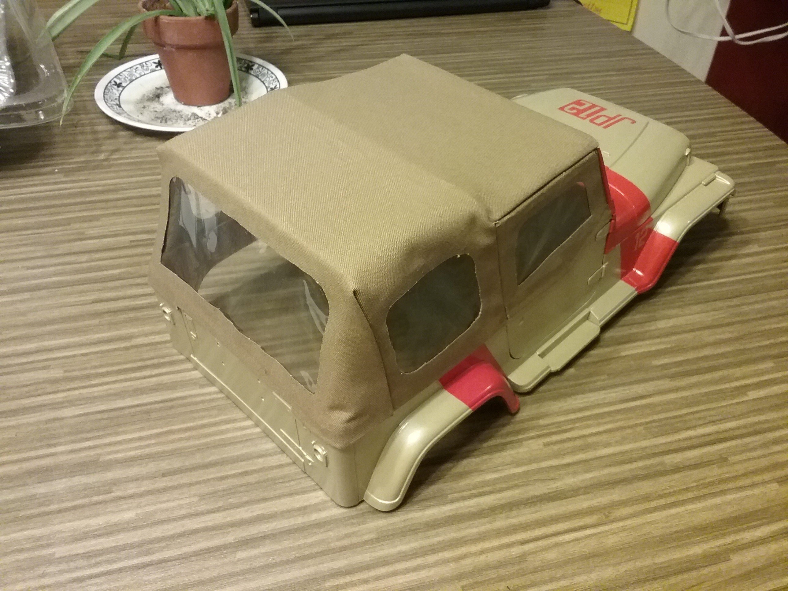 If you look closely, you might be able to spot the test JP logo on the former hard top. The glue seems to be bleeding through the image more than I expected. We'll see how it turns out when fully dried.