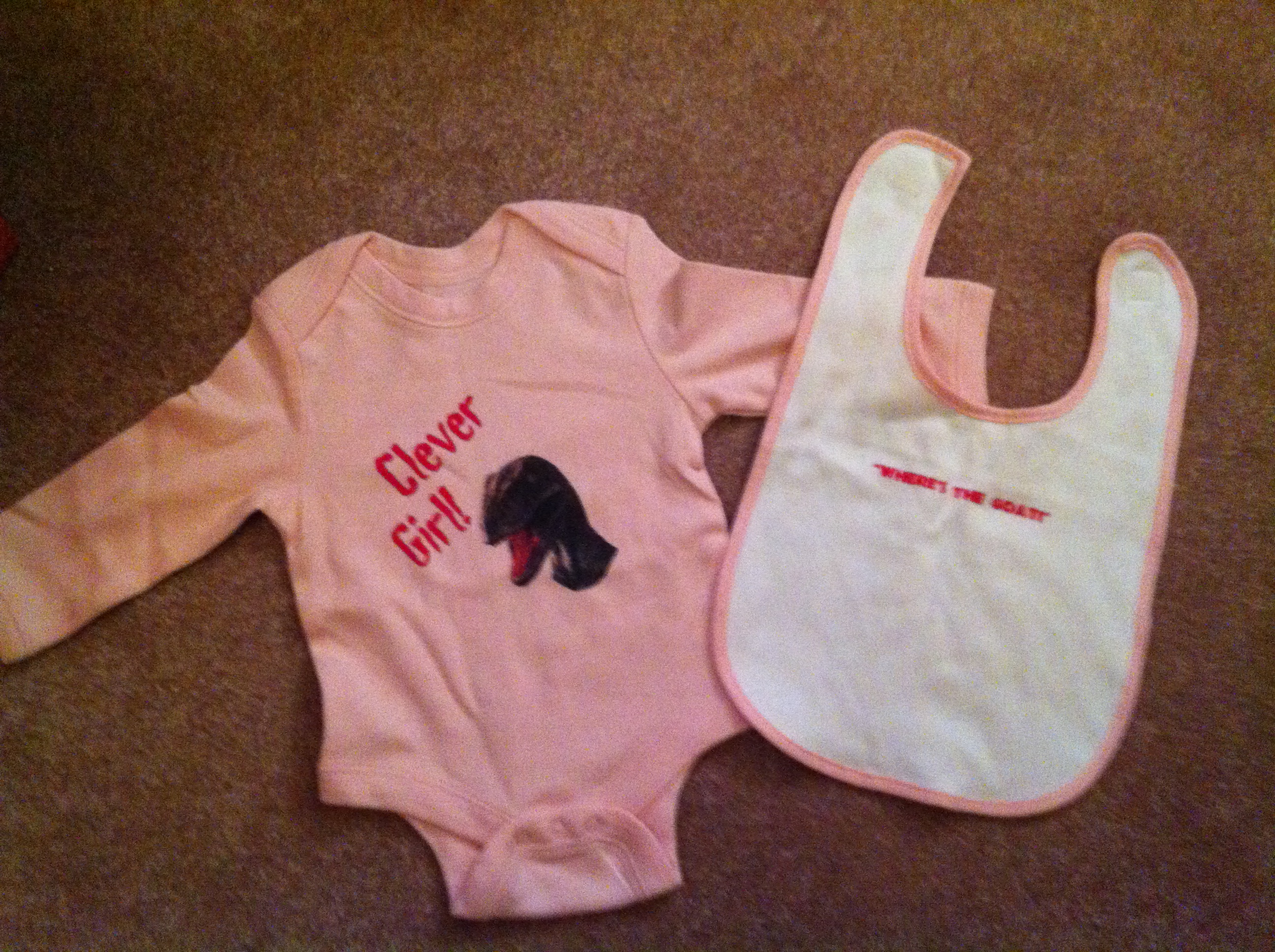 Yesterday my wife had her work baby shower and a friend of ours had these items made for her....they are going to be her " out in the jeep" outfit!!!