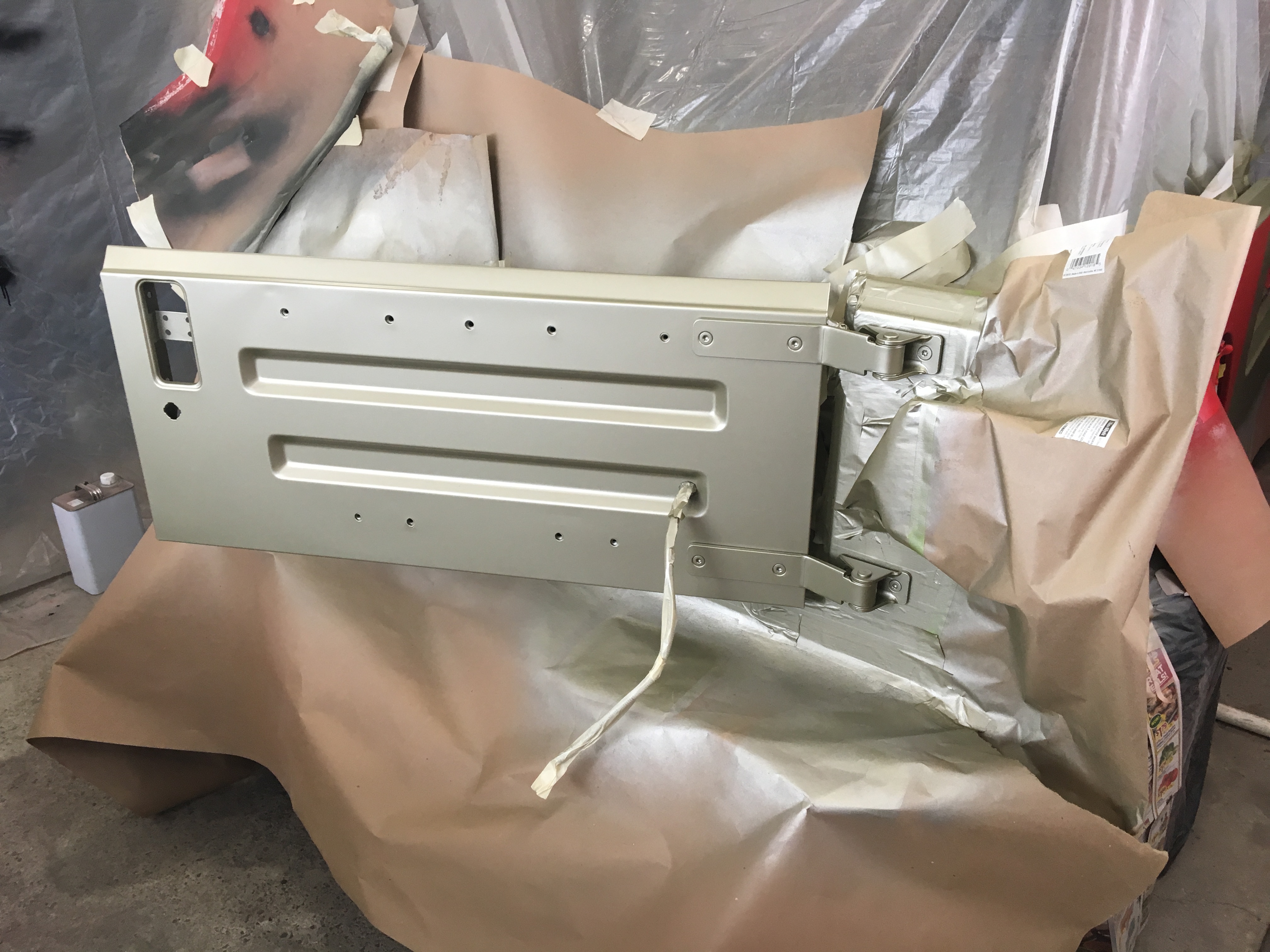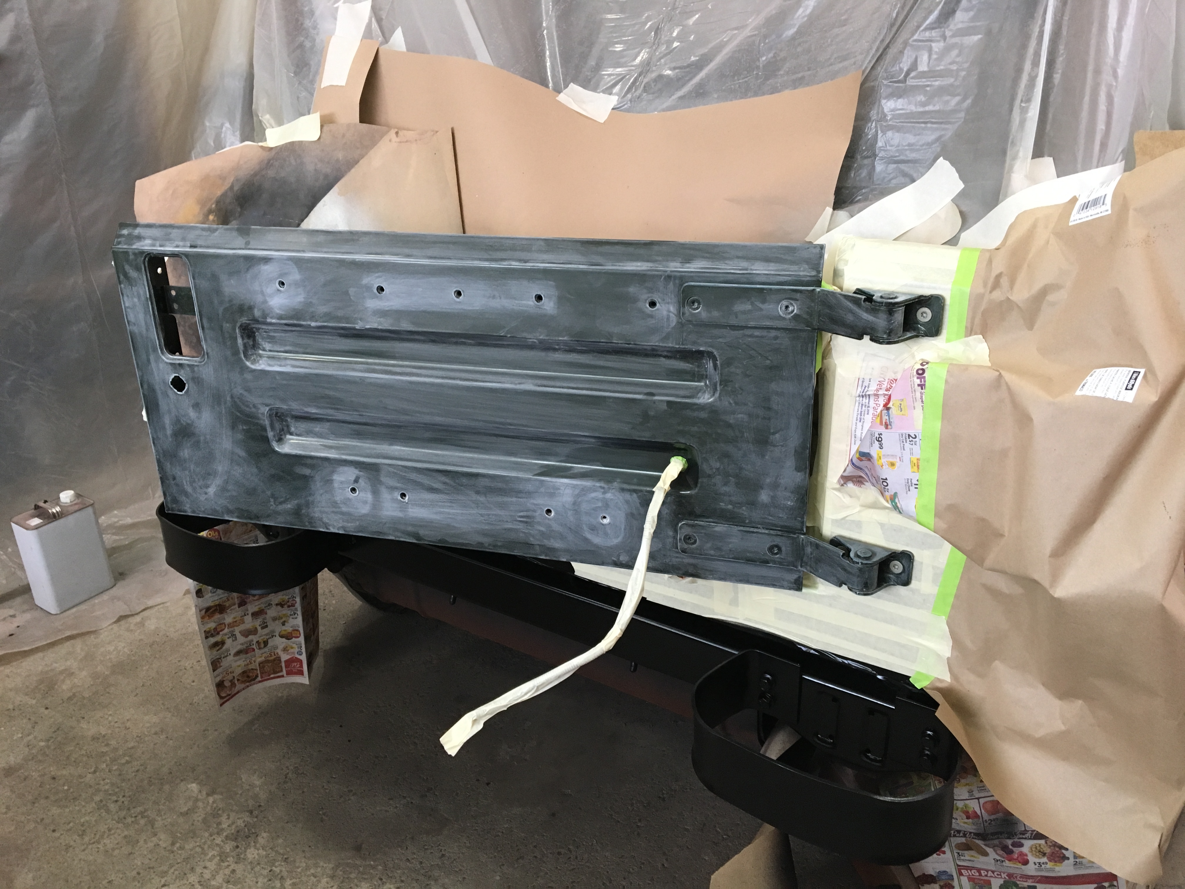 I had a bit of a setback. The flattener (added to clear coat to reduce gloss) went bad, noticed after I got part way through re-clearing. Will have to sand it down, hope I don't cut through the original clear and re-clear again. The paint shop was back ordered on flattener so I'm at a complete stop work/outage relative to paint. This is a shame because I wanted to have the paint booth ripped down last weekend so I could roll the other [trail] Jeep in and weld the frame.