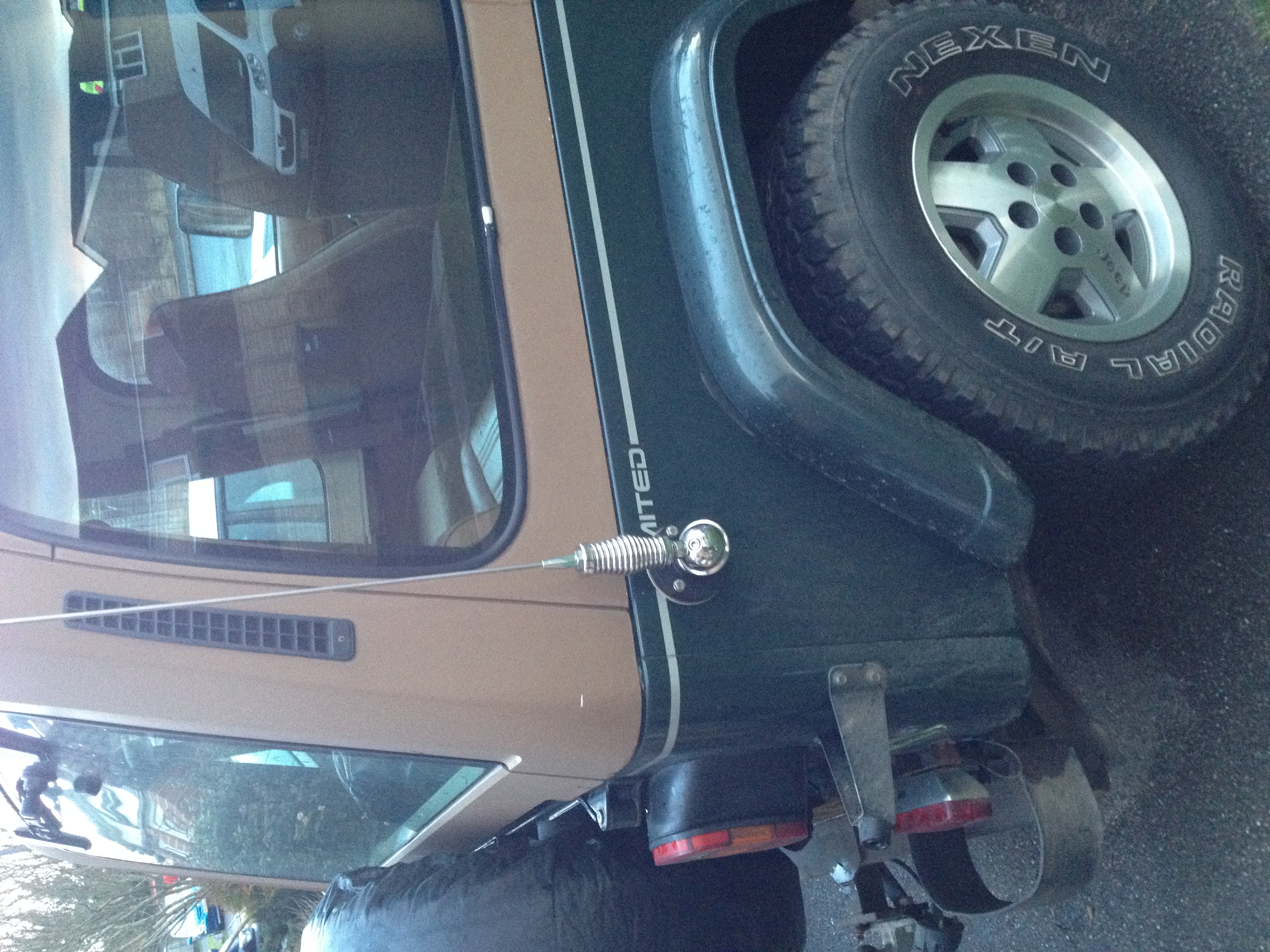 Anyway fitted my whip at the weekend too, that was scary drilling those holes! i bought a tie down too but it would involve drilling the windshield frame im not up for that. So i came up with another way.... i got some wire wrapped it around the rollbar then around the tip of the ariel. covered that in electric tape as a bit of protection from rubbing & boom its tied down! (till i get the light bar sorted)