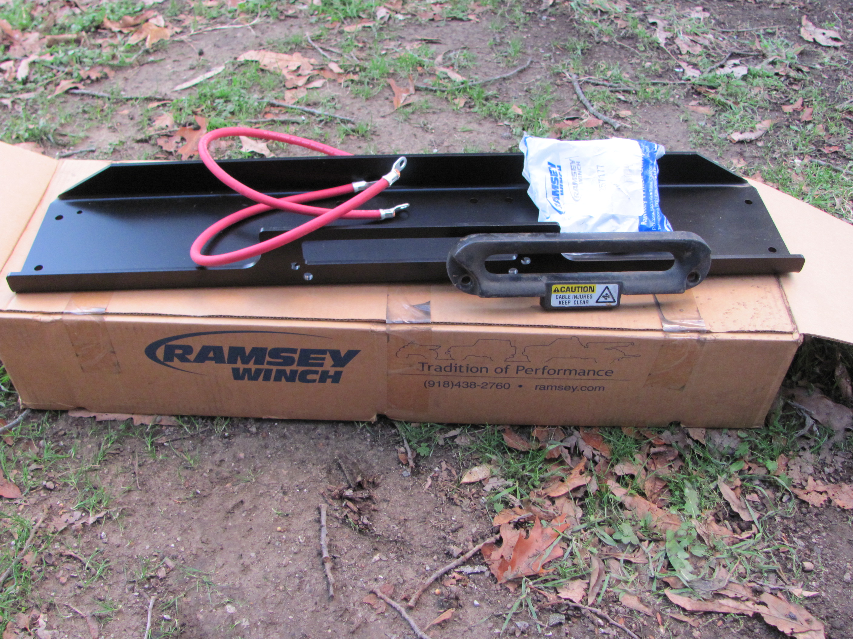 I went into Tulsa today looking to find a mounting plate and info on a replacement cable for the winch.I found out, that only a Ramsey plate will work with the rep 6000 due to the location of the control pack. Lucky me found a old dusty box at Sams off road. Sams has been a Ramsey dealer long before they went bankrupt and just happened to have one plate left. (New in the box) To sweat'n the deal he gave me a hawse fairlead. He says no one uses those things anymore.