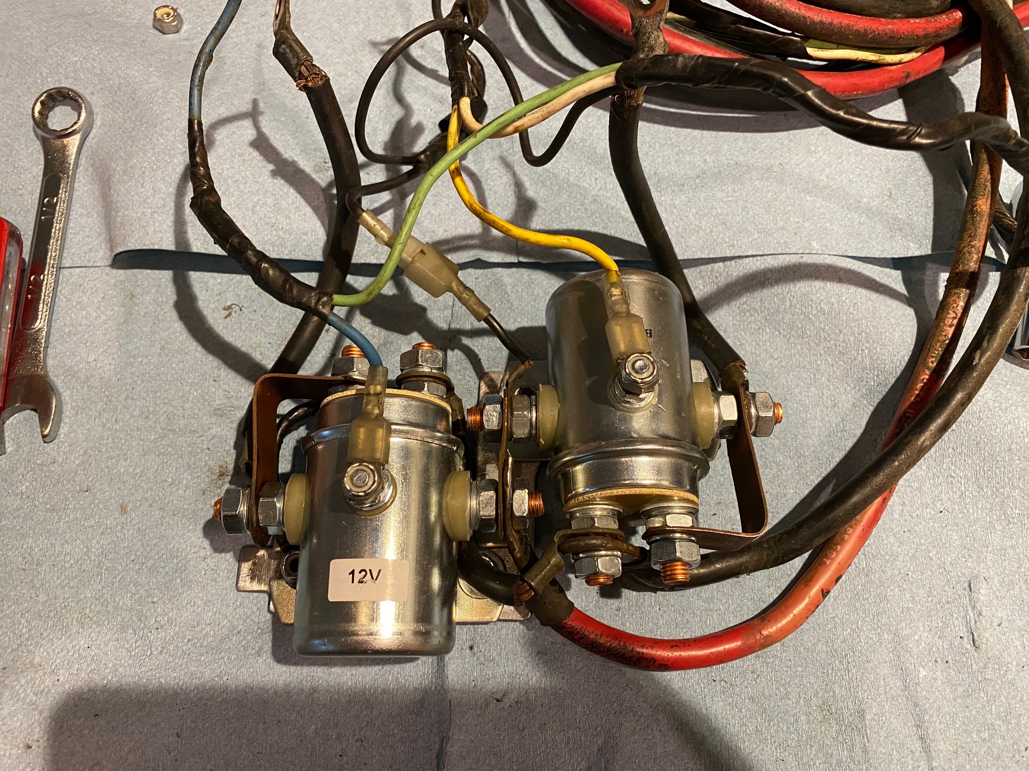 -After testing the operation of the solenoids for the winch, I was having an issue with one of the bolts shorting and sparking. Summit Racing to the rescue... new solenoids... removed and replaced all the old hardware and parts with new ones... took a little bit of time, but accomplished the task, and checked the operation with some jumper cables. Works wonderfully!!