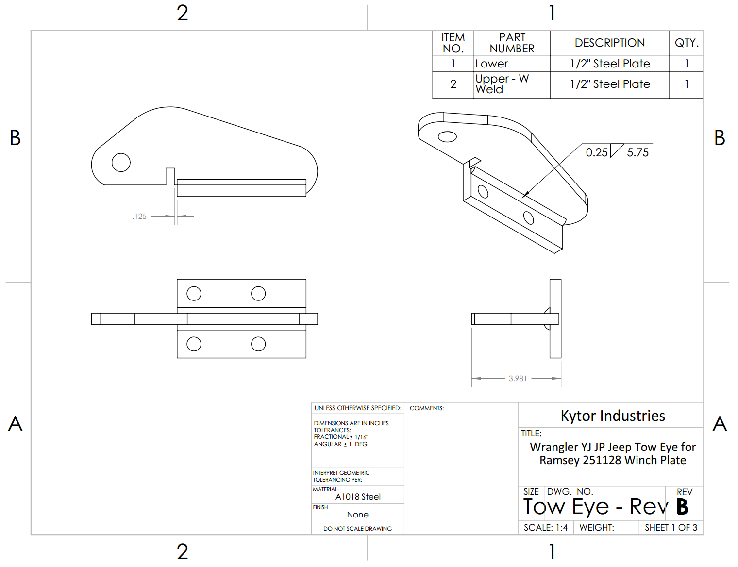 I updated the first post with the latest drawing revisions for the fog lamp bracket, tow eye, and light bar.