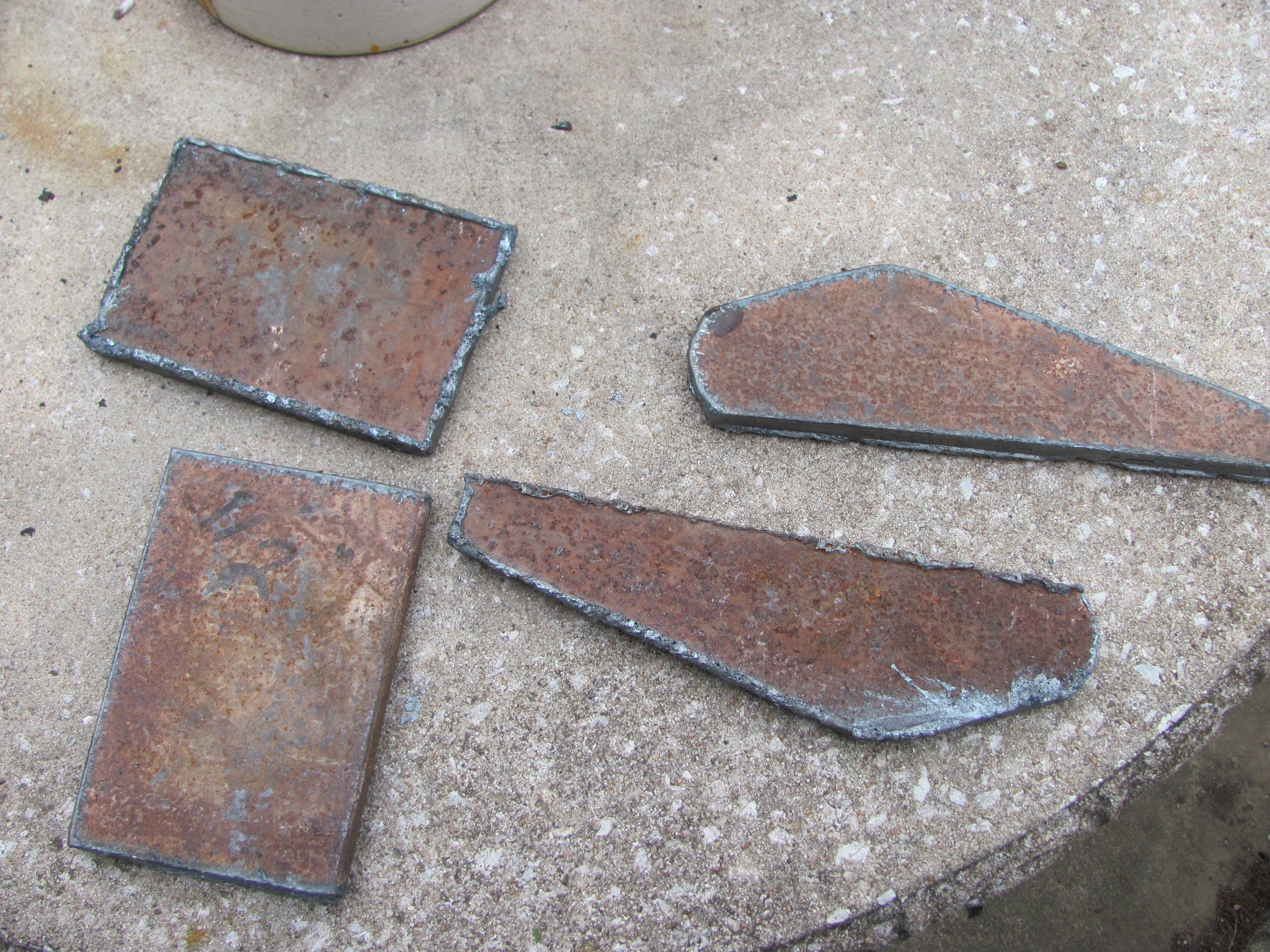 I went to the steel place and got them to use a track torch to cut out the custom hooks. I have already went through one cutting wheel on my Dotco cleaning up the edges. I started with a hammer and a chisel to remove the stuff from the edges then i use the Dotco to round the edges of the cuts. I will need a belt sander to do the rounded sides. This is the photo of what they looked like right after i brought them home. They dont look so good, but i think they will clean up nice.