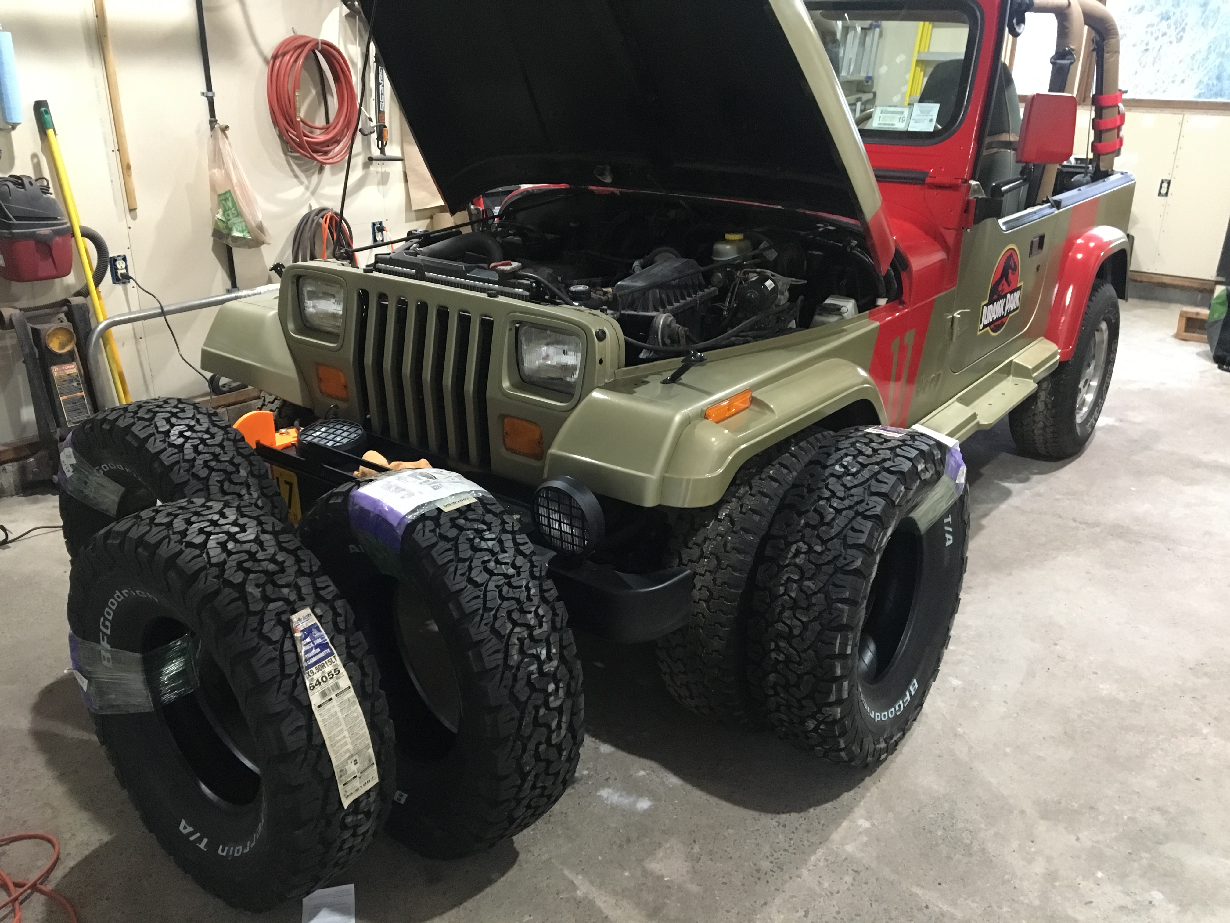 Now the question is... how am I going to haul four big Jeep tires and separate 15" alloys in my Saab? I guess it's time for some upgrades to the trail beater SJ (Shitty Jeep) so I can tow a trailer and illuminate the entire Northeast. This one may eventually become a rattlecan JP Jeep... we'll see.