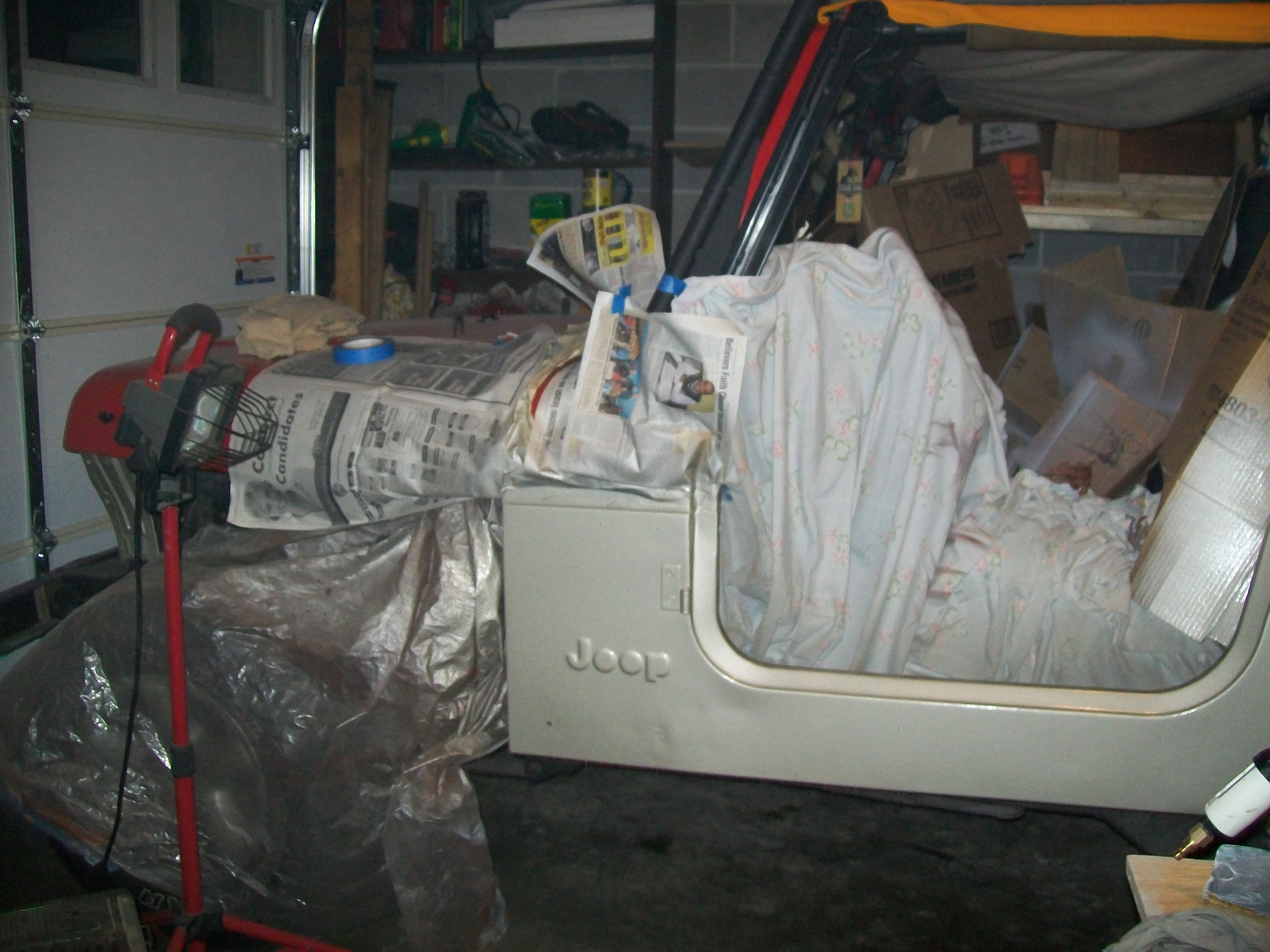I have started to paint the sides! I was able to fit my Jeep in the garage, but am only able to paint one side at a time. I have finished the Driver Side and am working on the Passanger side today.