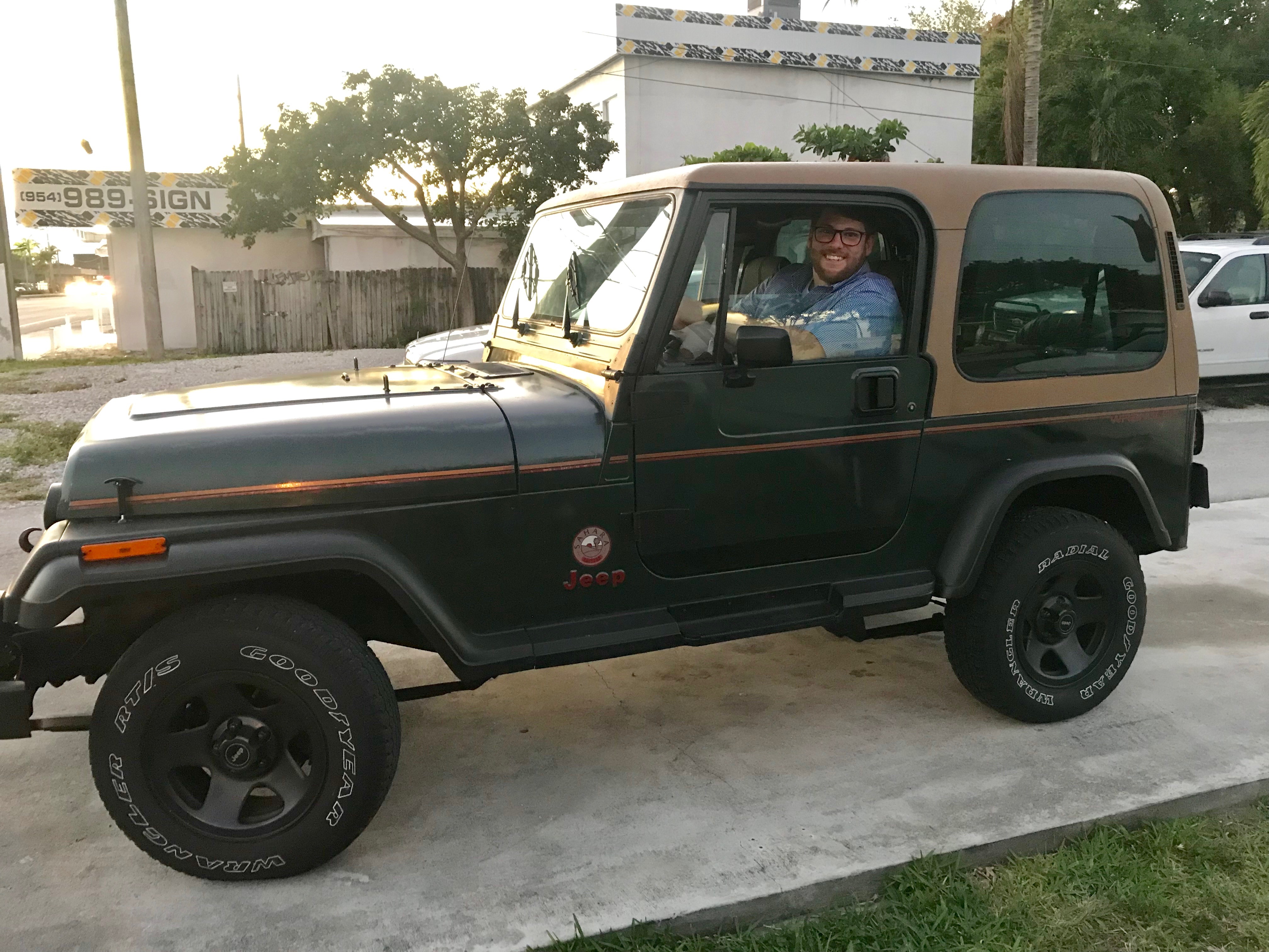 So after 3 years of researching and stalking everyone's build here on the forum i finally found a good base to do my conversion. I located a 93 Sahara with the correct trim with only 105k miles. I was lucky that the previous owner never took the hard top off so the interior was still in amazing shape! After bringing it home, replacing the tires with the BFGoodrich All Terrains i started to acquire the correct parts. I sold the hard top to purchase the soft top and frame, purchased the light bar from Jameisons, acquired half doors and the correct Sahara door panels, got the rims off of Facebook, bought the accurate front fogs and then i luckily found the REP 6000 winch on craigslist! I then restored the door panels and center console with the correct Sherwin Williams paint, then stripped the jeep and started to sand it. My father and i trailered the jeep up to Jacksonville to have the jeep painted by Ocean Spray Paint and Graphics, same painter who painted fellow Motor Pool member Dwight's jeep. Thanks to Dwight for all of the help during the painting process, it was much easier having him there since he had painted his not that long before. After the jeep was painted we brought it back home and i pieced it all back together. It looks absolutely amazing and I'm beyond happy with how everything turned out. I could not have gotten all of this done without the support from my wife and family, but also good friends like Dwight, Vic, and Troy! I love taking it to car shows and events and seeing everyone's faces, always reminds me of why i did this! **Still on the hunt for the Screen Accurate Rear Fogs**
