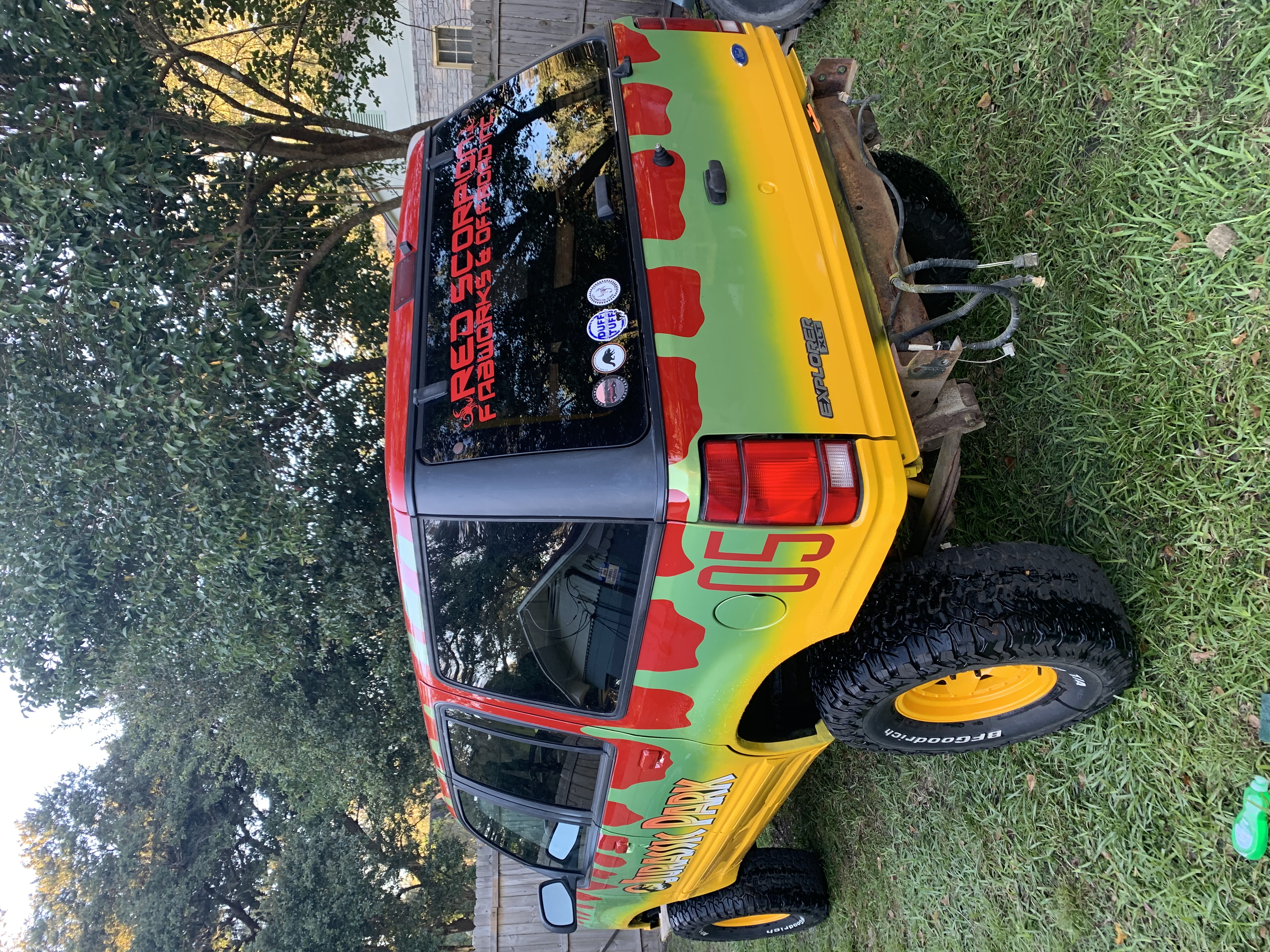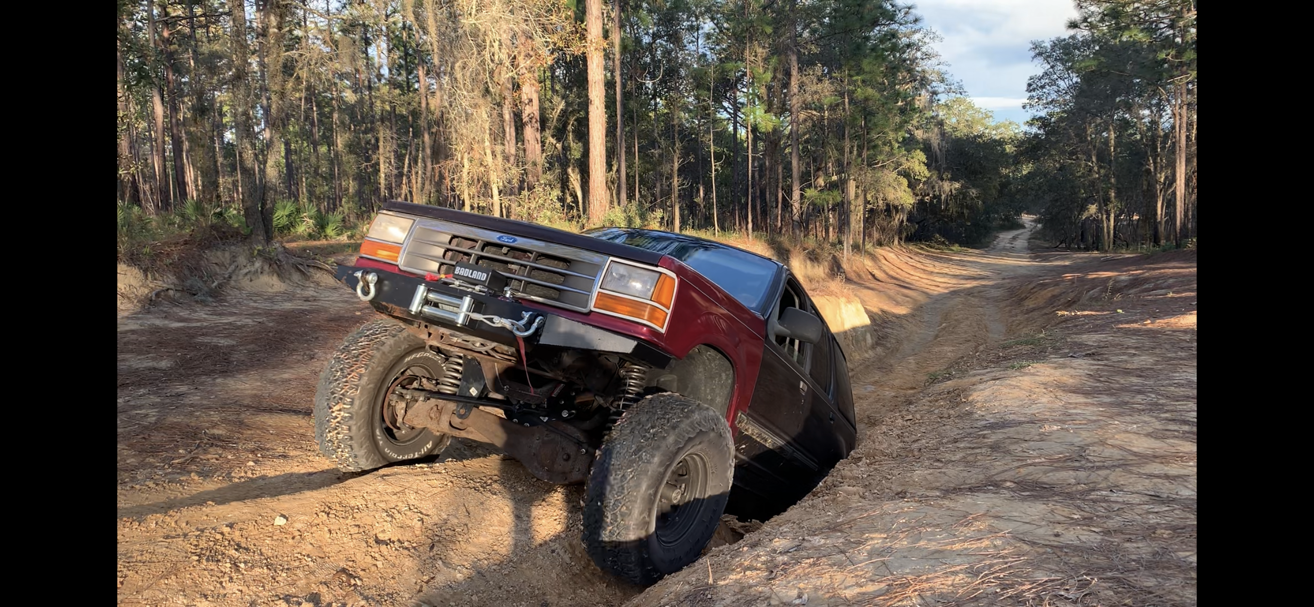 Since no one makes a nice looking off road bumper for the explorer I decided to get a weld it yourself kit for a Jeep XJ. Had to move the mounting points inward but the outcome was perfect. Also replaced the drivers fender, lower valance and headlight bezel. It stayed this way for a few months with the addition of a winch. We took it out to Citrus Wildlife Management Area a few times off roading. It did great but the front suspension was getting tired. Also the lift bracket punched a hole in the top of my front diff.. I know I know.. lift brackets suck! Lol. Then it got a little more serious. I decided after getting my Bronco II that I’m building back from paint that I wanted to learn how to paint. (Because I hate the outcome of my B2)