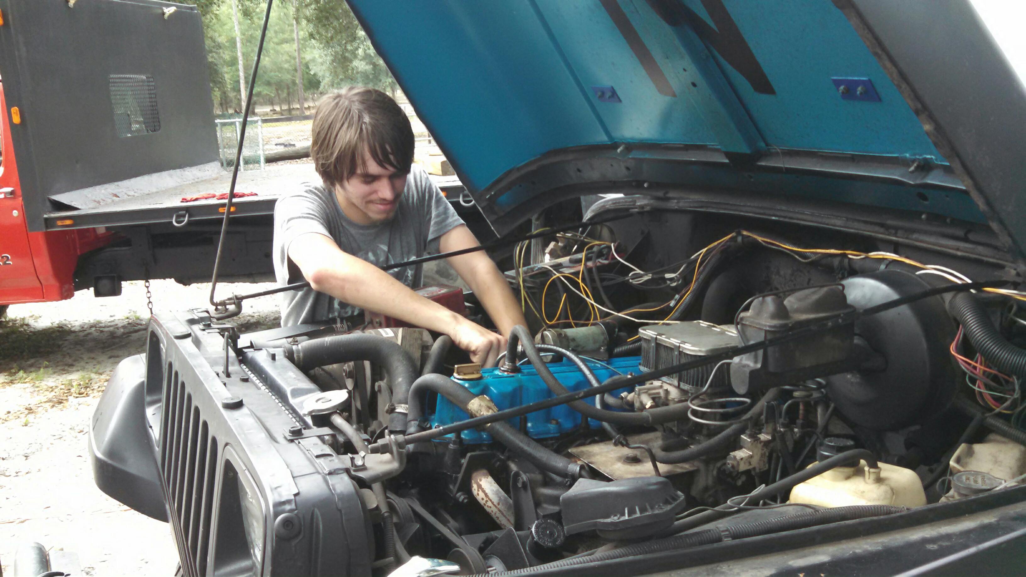 Found oil leaking from around the valve cover. Had a new gasket, bolts weren’t tight. New it had a 4 cylinder. Some one replaced it with a 4.0, 6 cylinder. It’s a good thing I use to own a mobile repair shop. And worked for 3 years as a lead tec. for a Chrysler dealer ship for 3 years or this stuff might be hard.