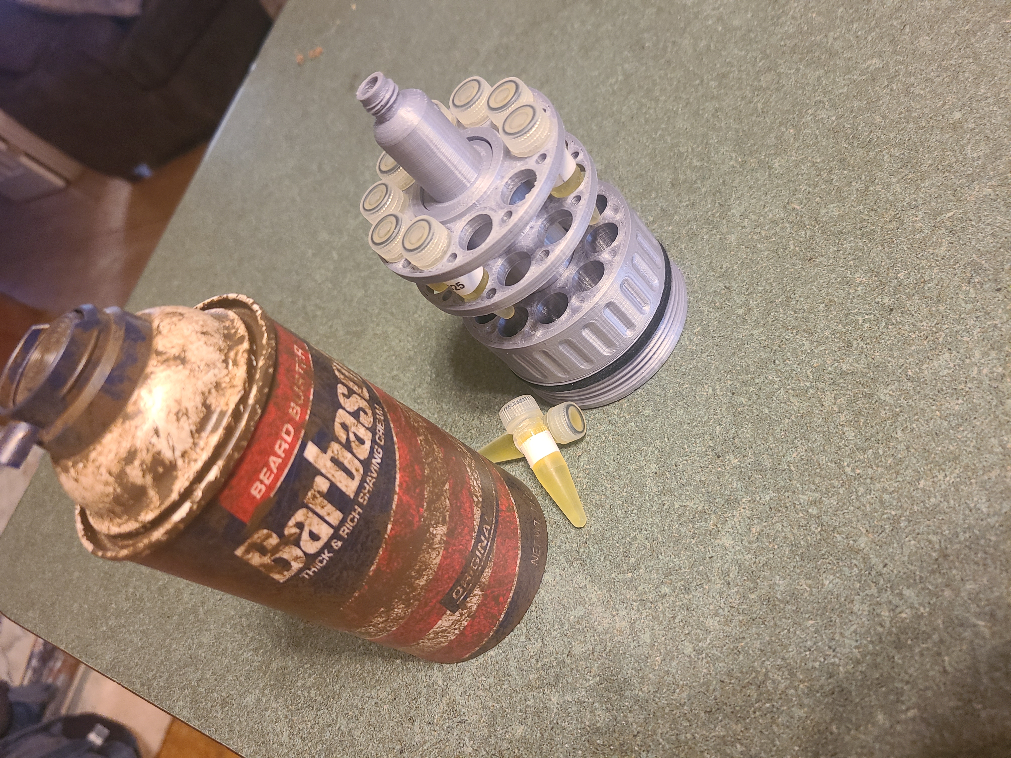 here is my cryocan, eventually i will upgrade my bottom to a machined piece but for now 3d printed will work. I also have the pre-order cryocan from chroniclecollections.