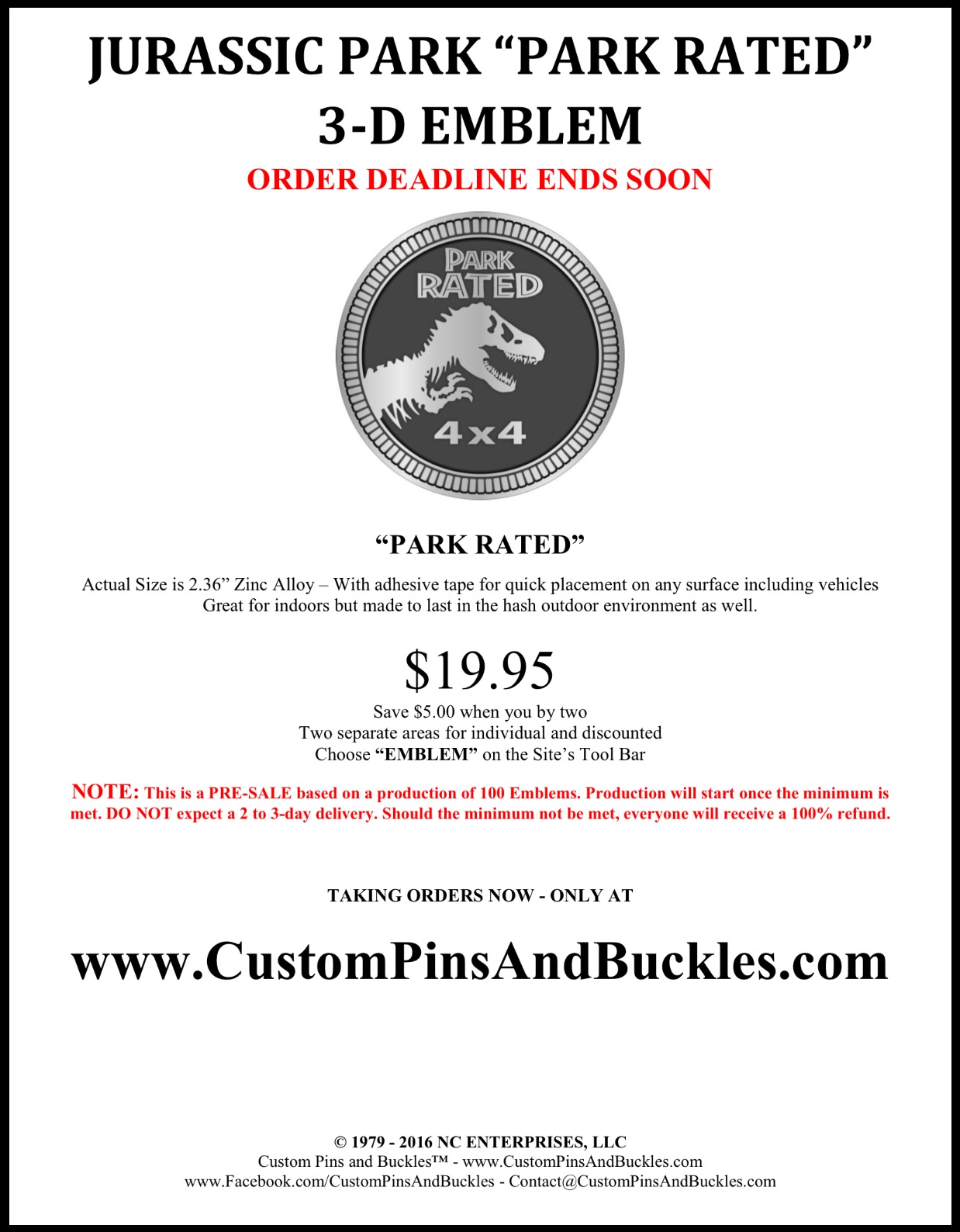 UHHHHH.... Tell me! What is it that you need to know?? Please help me to understand your inquiry. its that I am so confused about the JURASSIC PARK cusom made badge. UHHHHH was this really in the movie? If so please describe to me what movie this custom made Jurassic Park badge appeared in. I am so confused! Do I pay now or later? Will the badge be sent to my work, or to my house? Can you please help me install it on my Chevy Tracker?? I do not yet have a really Jeep!