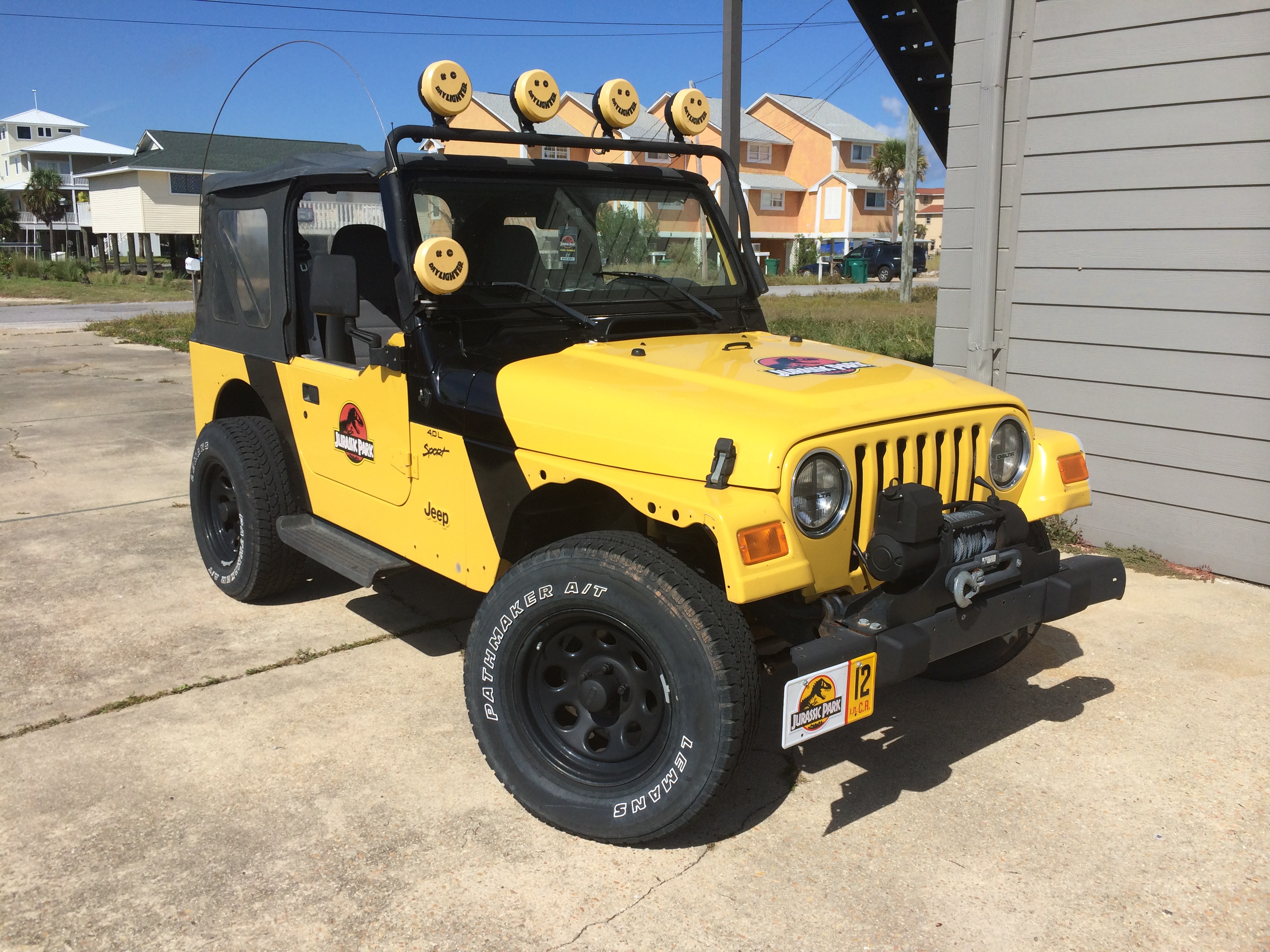 For awhile shes looked like this but i finally got the list together for things to finish this project! Ive already used some product to refurbish the soft top as well as the interior plastics to darken them back to their original color. Carpeting is on the way as its just empty floorboards at the moment. Some touch up paint for a few battle scars shes received from off road. A new shift knob as the old one is falling apart. A new hood decal in black to better replicate the original design. A number decal on each side, close to the front stripe however i will have to improvise as this model doesn't have as long of a nose as the 92-93 Saharas. Some Ingen logos for the sun visors. And some painted fenders with black striping for the finish. Possibly some new KC light covers but i don't want something with "KC" branded over the front. Last thing i would probably try and get some custom embroidered black floor mats with a subtle Ingen logo in yellow. After that maybe get some road flares, a industrial flashlight, just some finishing details. Any ideas or suggestions?