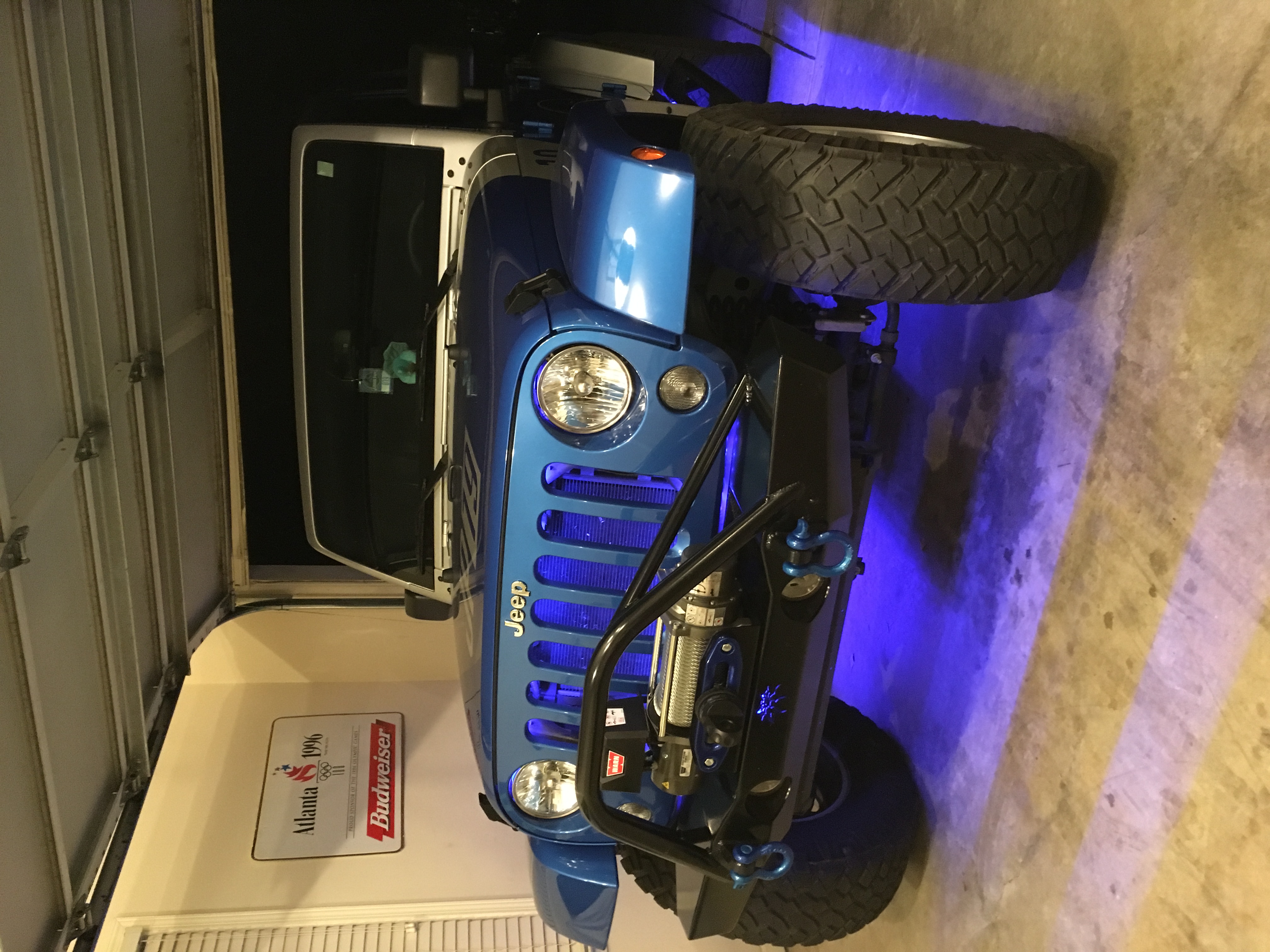 One of the first things I wanted to do was color matched fender flares. After many phone calls about painting the stock ones, I realized that finding a used takeoff set already painted was the best route. So, the searching began and after a few I found a basically brand new hydro blue oem set. They came off a 2015 rubicon that was getting flat fenders. I was able to get all 4 for 200.00! After a couple hour drive she had new flares. I dropped them off at the wrapper and installed them a week or so later.