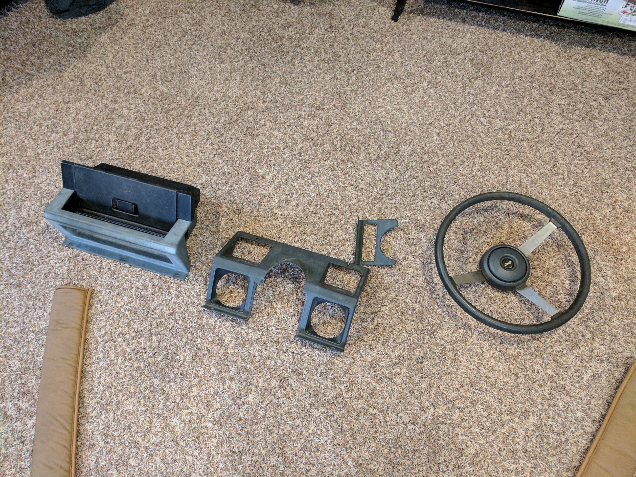 As my interior was the islander tan a big part was the dash but the junkyard asked $200 for it! I figured id wait on it till this summer or something but I ended up finding the upper dash pad on ebay for $60 free shipping. The guy that I sold my old seats to lead me to a misc jeep junkyard that was off the grid, It was an older guy with ALOT of jeep parts but almost nothing whole if that makes sense. I drove out there with $50 bucks in hand expecting to just look around that day and come back for more later. I just named parts left and right we picked them up for all $50.