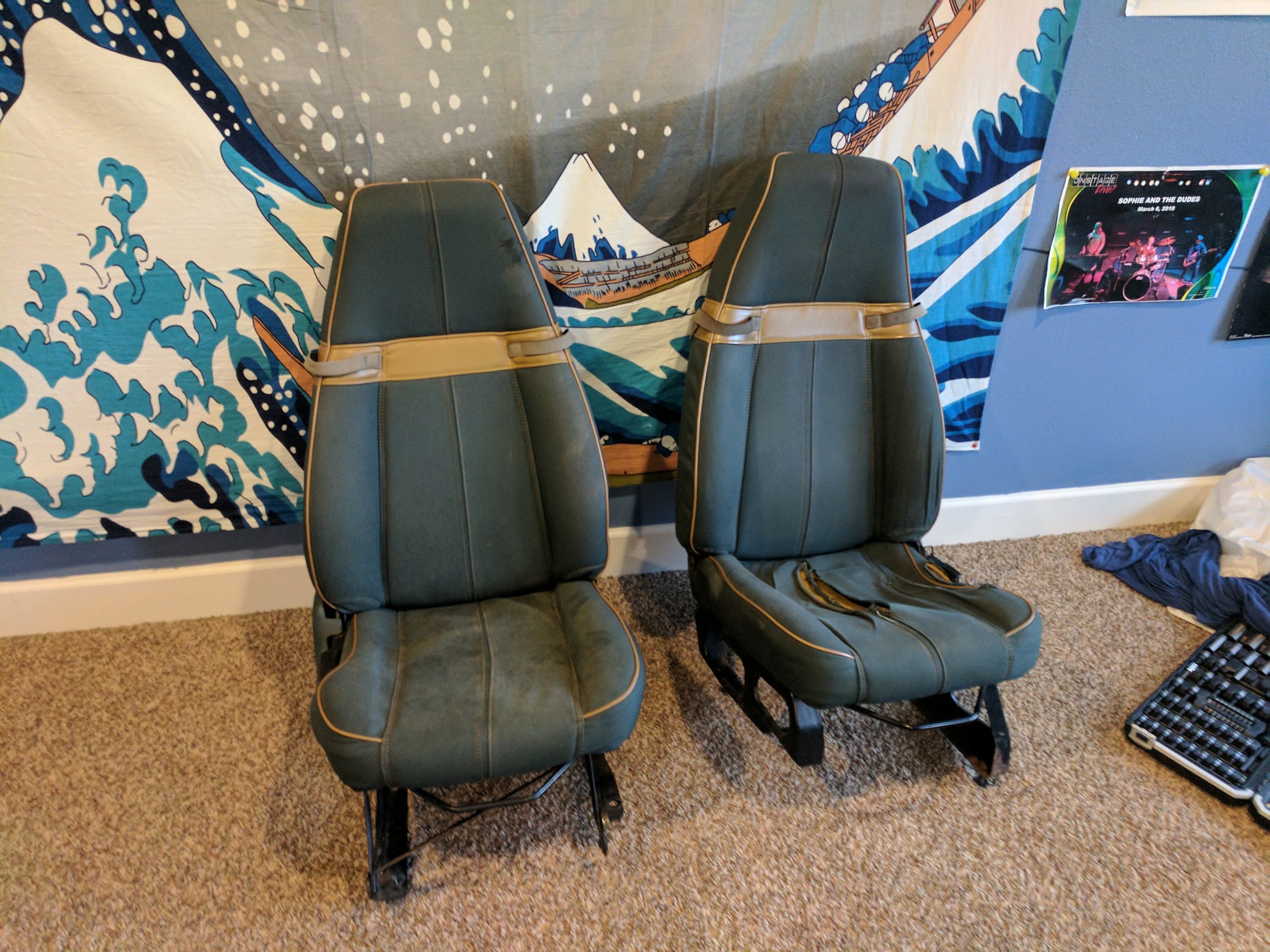 Looking good! Keep up the hard work! You might be able to take the bottom part of your "extra" passenger seat and put it on the driver seat (just the cushion or fabric) BAM! fixed driver seat!