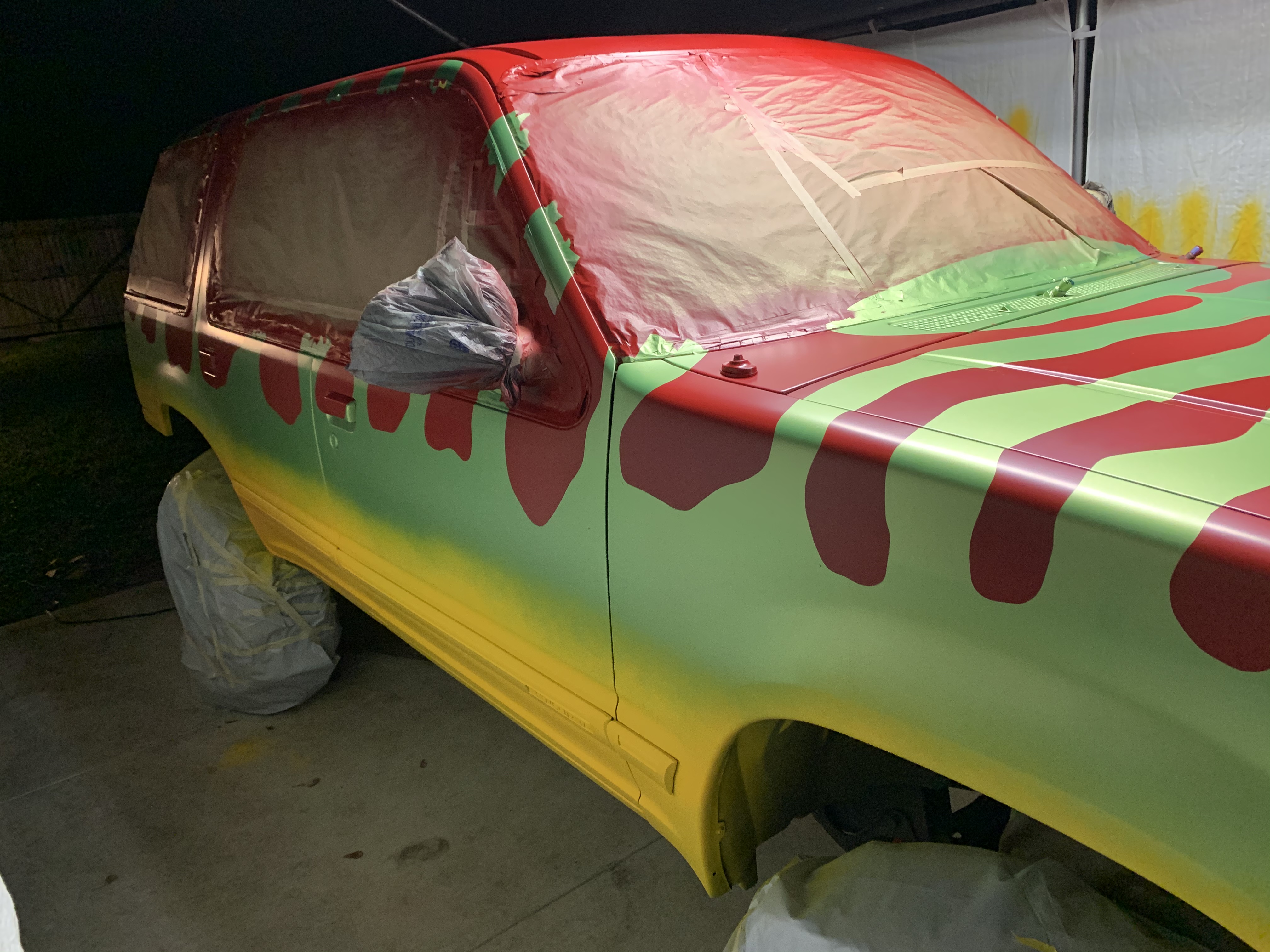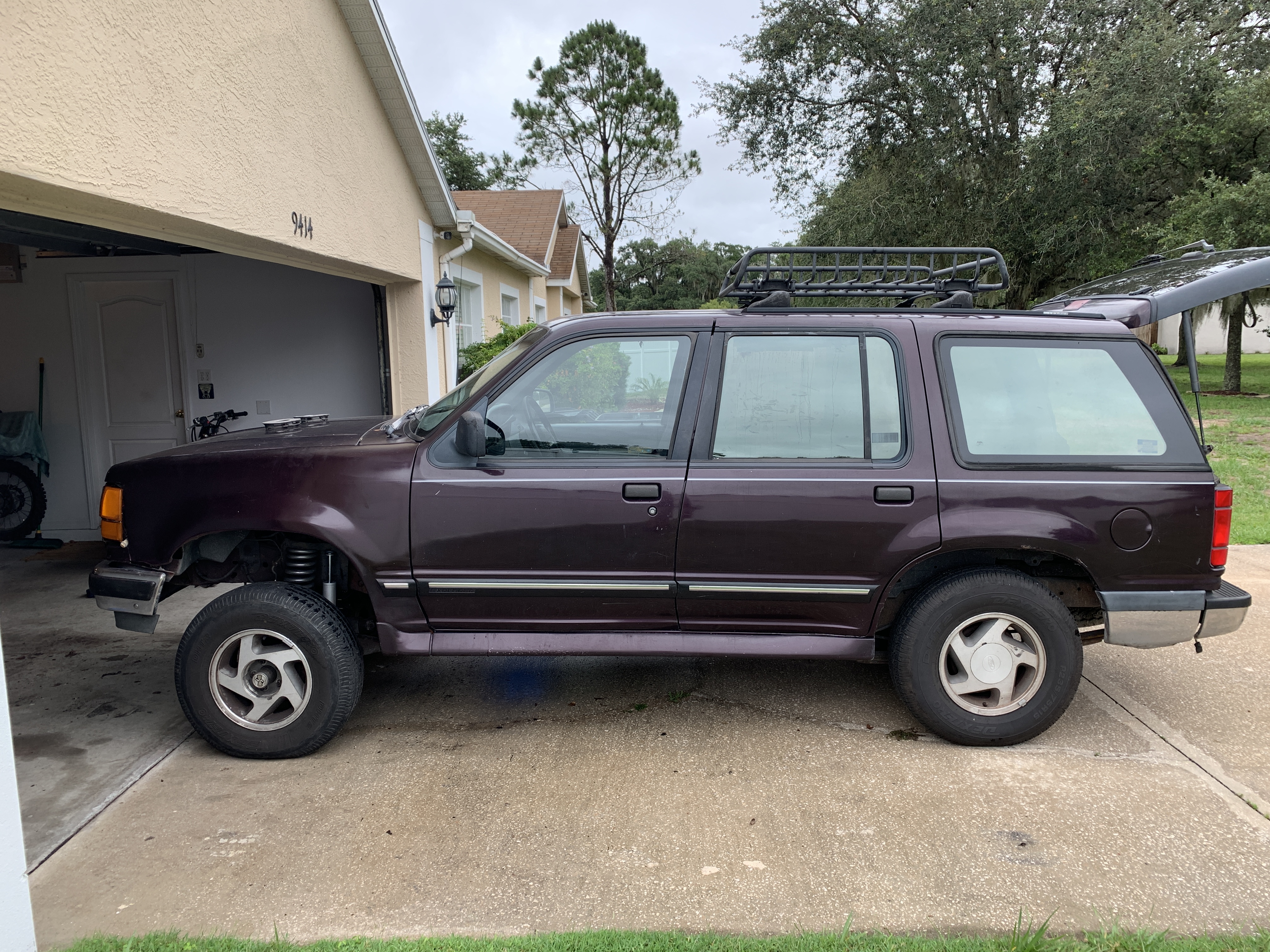 Since no one makes a nice looking off road bumper for the explorer I decided to get a weld it yourself kit for a Jeep XJ. Had to move the mounting points inward but the outcome was perfect. Also replaced the drivers fender, lower valance and headlight bezel. It stayed this way for a few months with the addition of a winch. We took it out to Citrus Wildlife Management Area a few times off roading. It did great but the front suspension was getting tired. Also the lift bracket punched a hole in the top of my front diff.. I know I know.. lift brackets suck! Lol. Then it got a little more serious. I decided after getting my Bronco II that I’m building back from paint that I wanted to learn how to paint. (Because I hate the outcome of my B2)