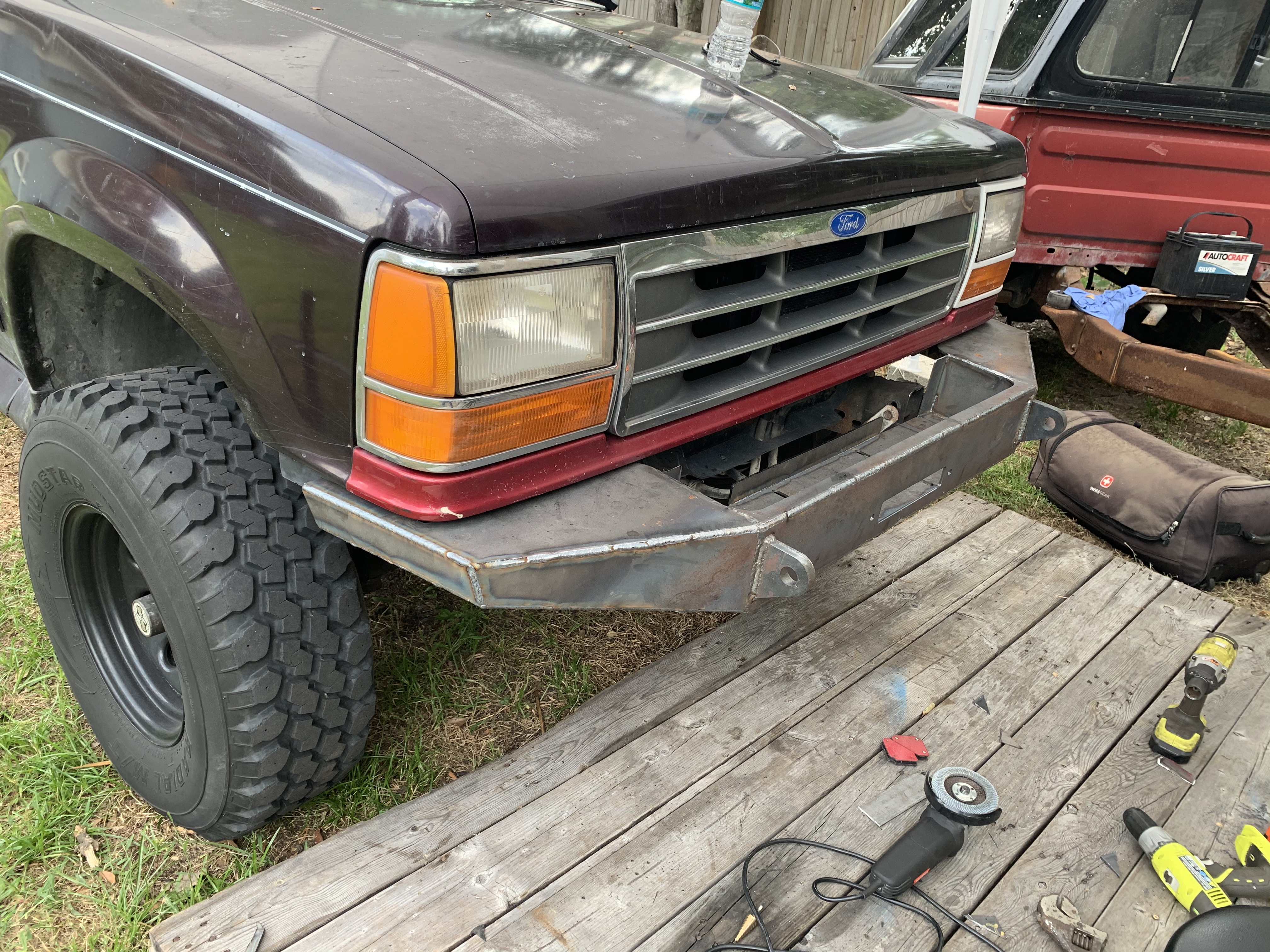 Since no one makes a nice looking off road bumper for the explorer I decided to get a weld it yourself kit for a Jeep XJ. Had to move the mounting points inward but the outcome was perfect. Also replaced the drivers fender, lower valance and headlight bezel.