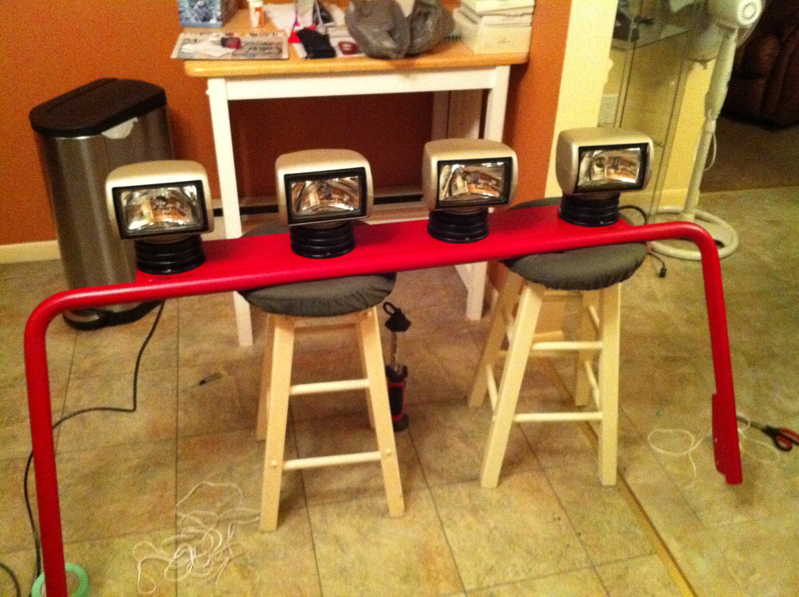Here is the process, i made the whole job harder by going for a screen accrate lightbar. I welded the 3 pieces together to make it all one bar. This made it real hard to run the wires through the light. I had to use a fish and tie a string to each wire and pull them. The bend in the bar made it impossible to just feed the wire through on it's own.