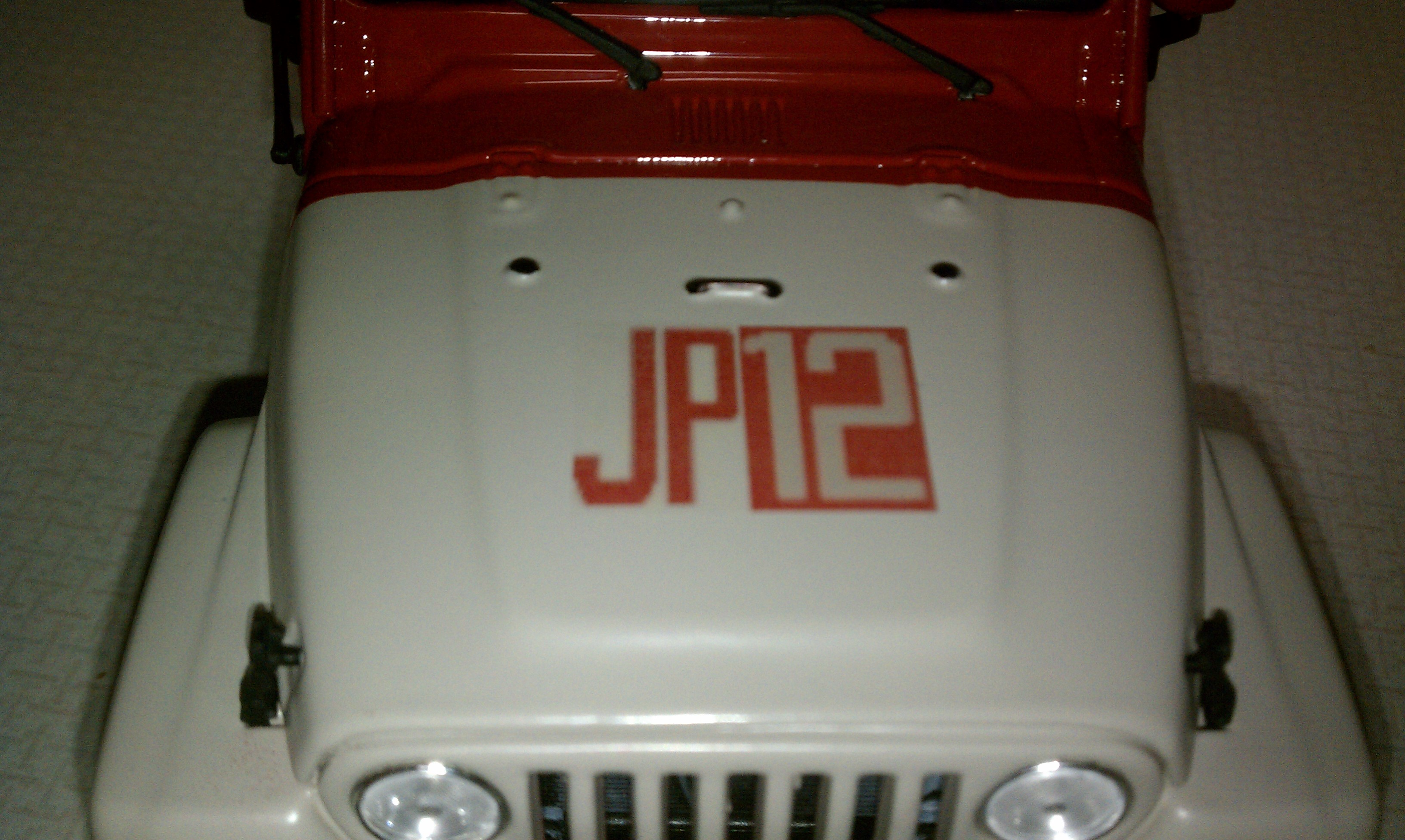 I love the JP cars. I have a large collection of 1:18 scale movie cars, some made by various companies, some custom made. I started with a white 2003 Wrangler Rubicon model by Maisto. The light bar, lights, and winch were custom made. I still have some finishing touches to go, such as the rear amber lights, the CB antenna, and the decals. I went with the olive interior, because I like it better than the hunter green. I also bought a 2007 Explorer model that will be started soon, if I can ever figure out how to make the clear plastic bubble for the roof. The 2007 was the only 1:18 model I could find...
