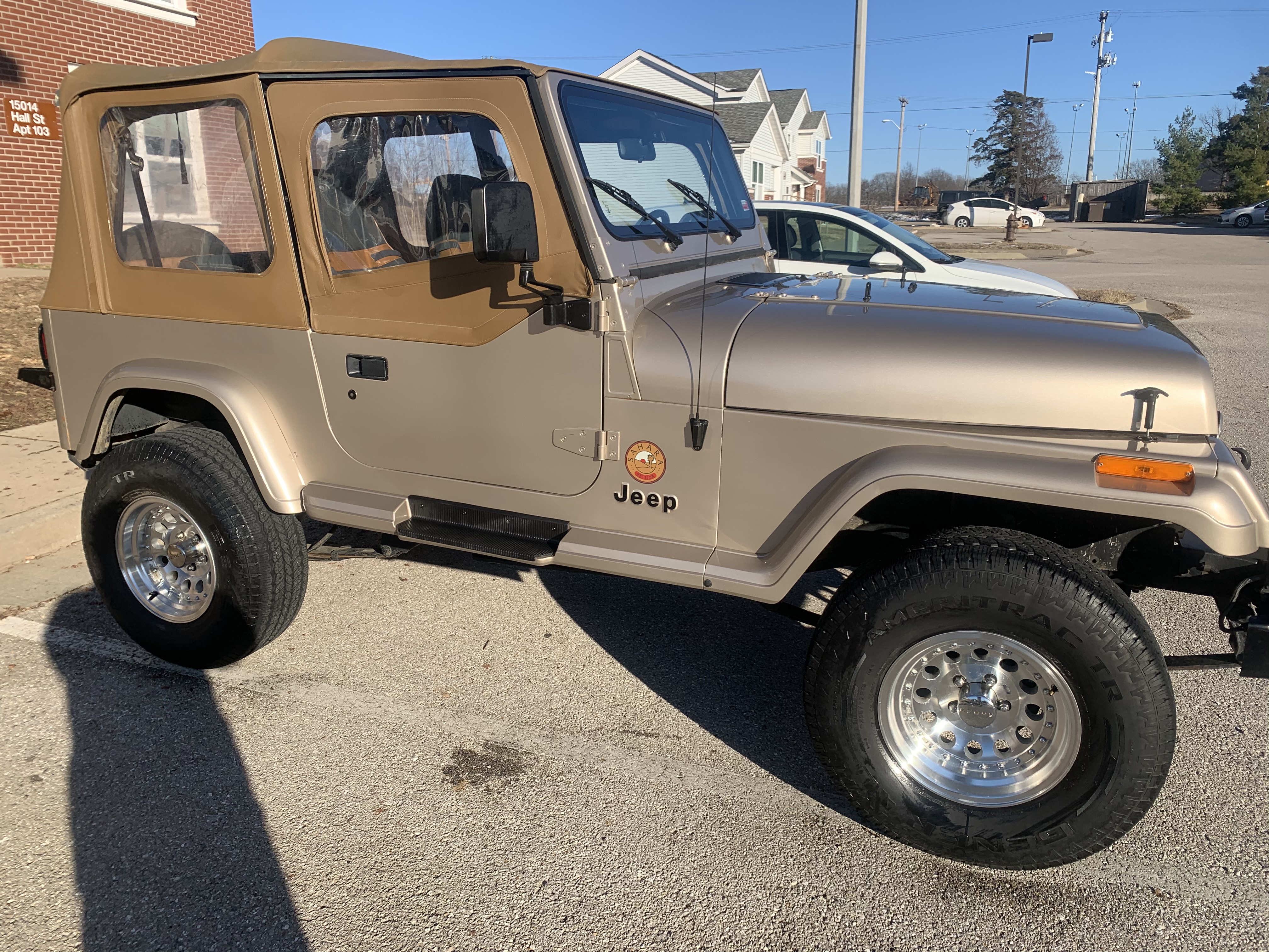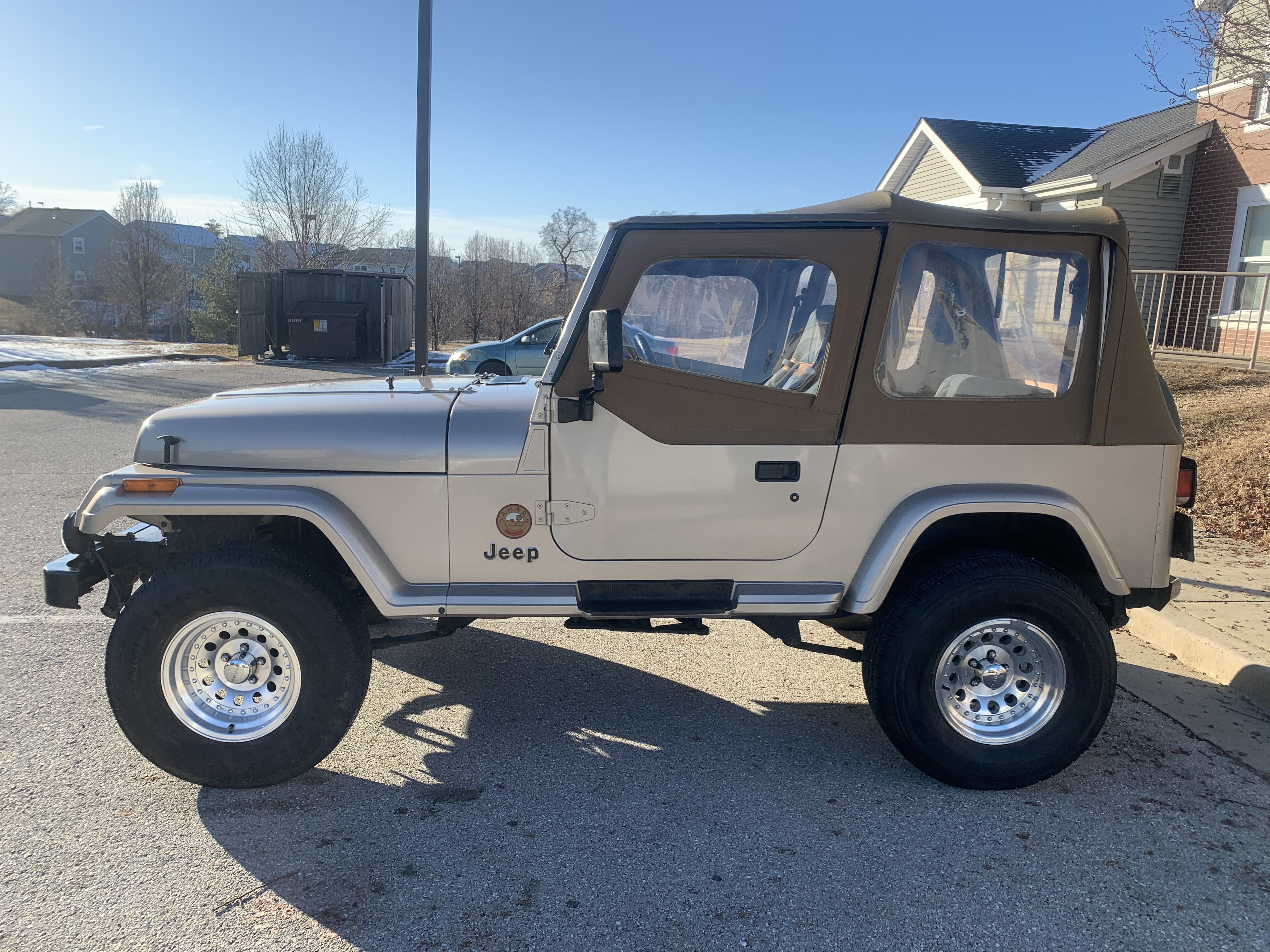 This is the 1993 Jeep Sahara I'm starting off with. (If anyone is curious about the 22; Mission 22 (Veteran suicide awareness campaign)