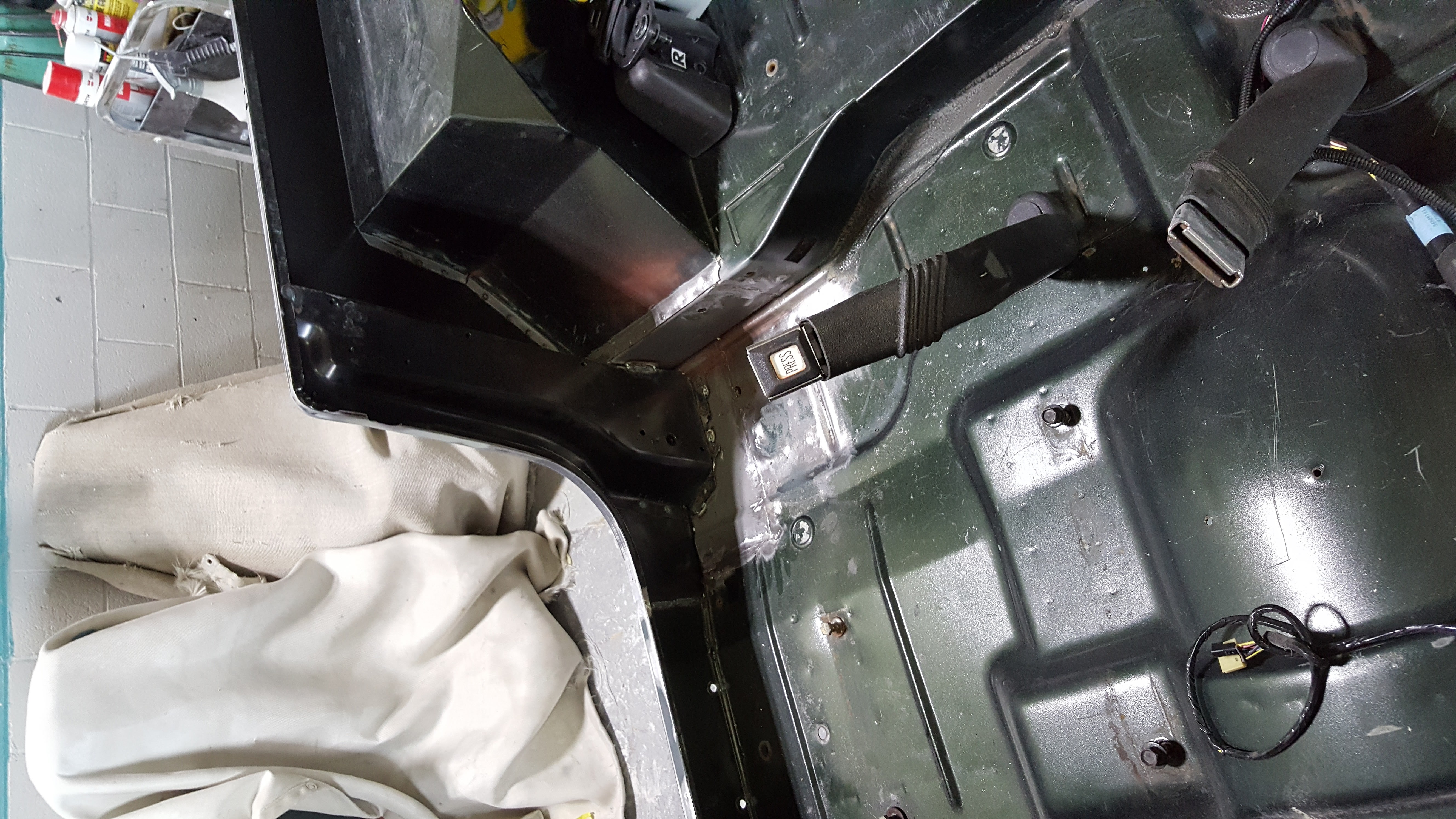 The rust had gone through not just the side panels and fenders, but the tub as well. I quickly learned that the Jeep was not even safe on the INSIDE. The seatbelts had rusted apart at their attachments and everything needed to be welded.