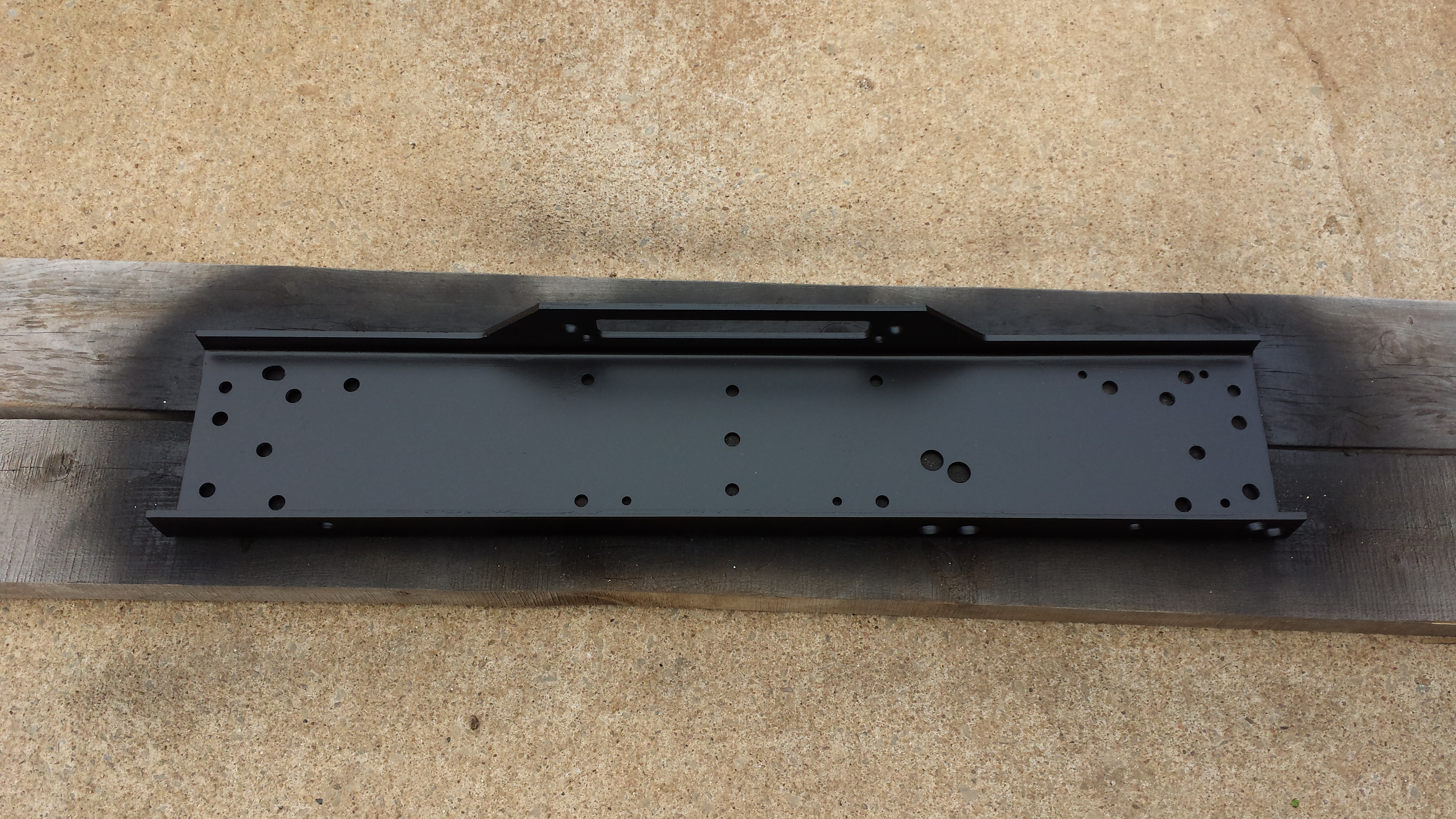 After I drilled the holes I went to mount it with the winch on and found my second problem. The bolts attaching the winch to the plate were hitting the bumper and not allowing me to tighten the plate down. So I went back to the original PDF of the Ramsey Jeep YJ installation instructions and found out I was missing some spacer blocks. I then looked on this forum at the islands of adventure Jeep and sure enough, there they are. So I decided I would make mine looks as close to the originals as possible. So I found some rolled steel that looked like it was the same size, cut some pieces to length, drilled, and then painted them. They ended up looking and working out great.