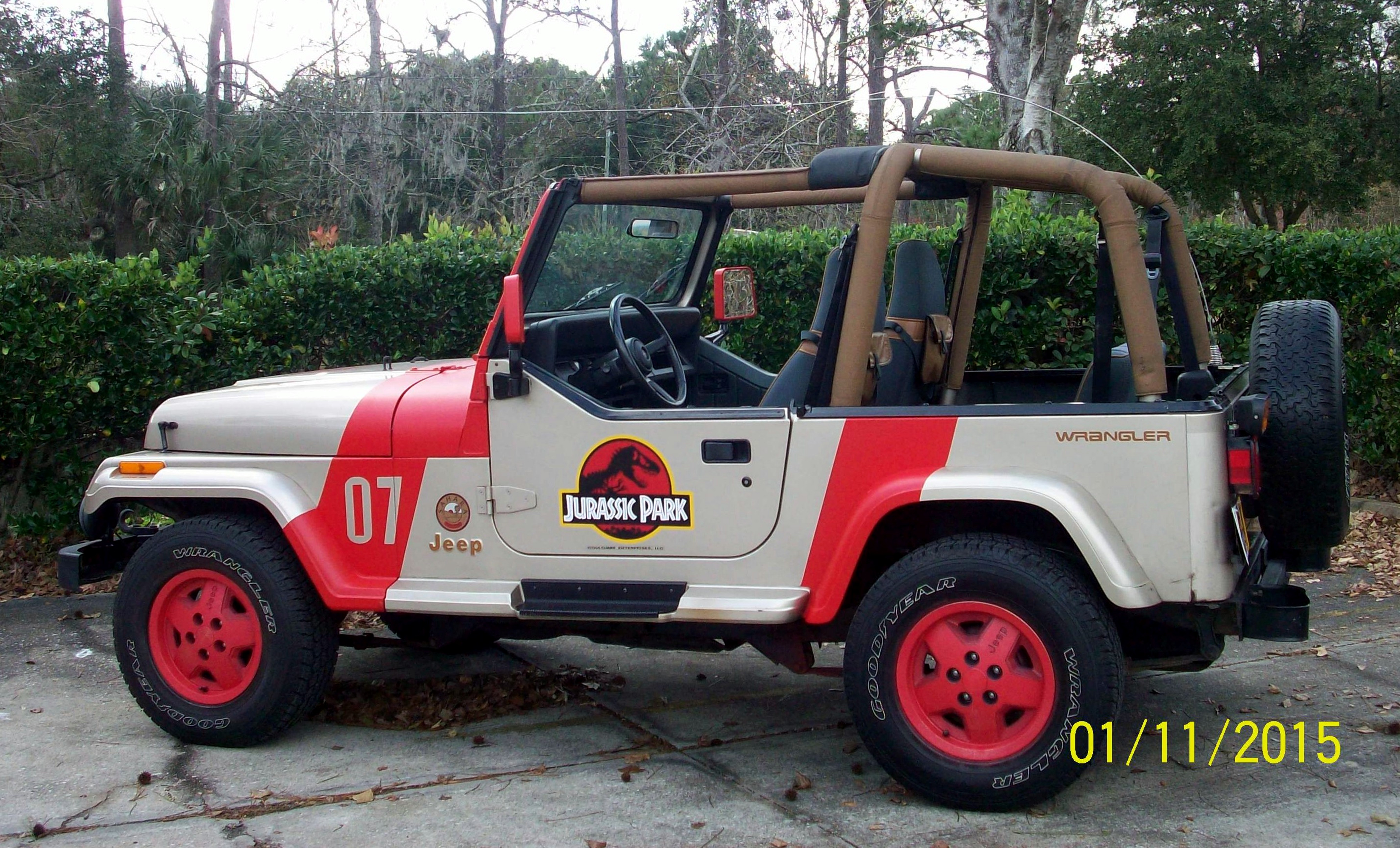 This is our Jurassic Park Ranger/Staff Jeep replica #07. We built this replica from a 1992 Sahara YJ that we found in Indianapolis Indiana. Universal Studios was kind enough to share with us a red paint chip sample off the screen/movie used JP jeep they have on display at their theme park.