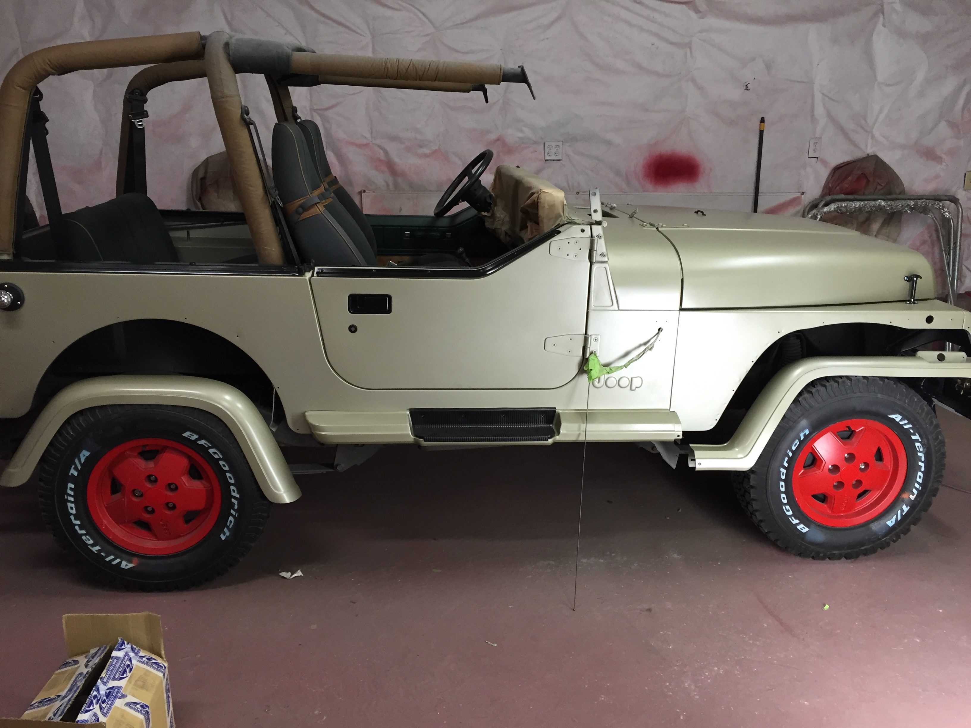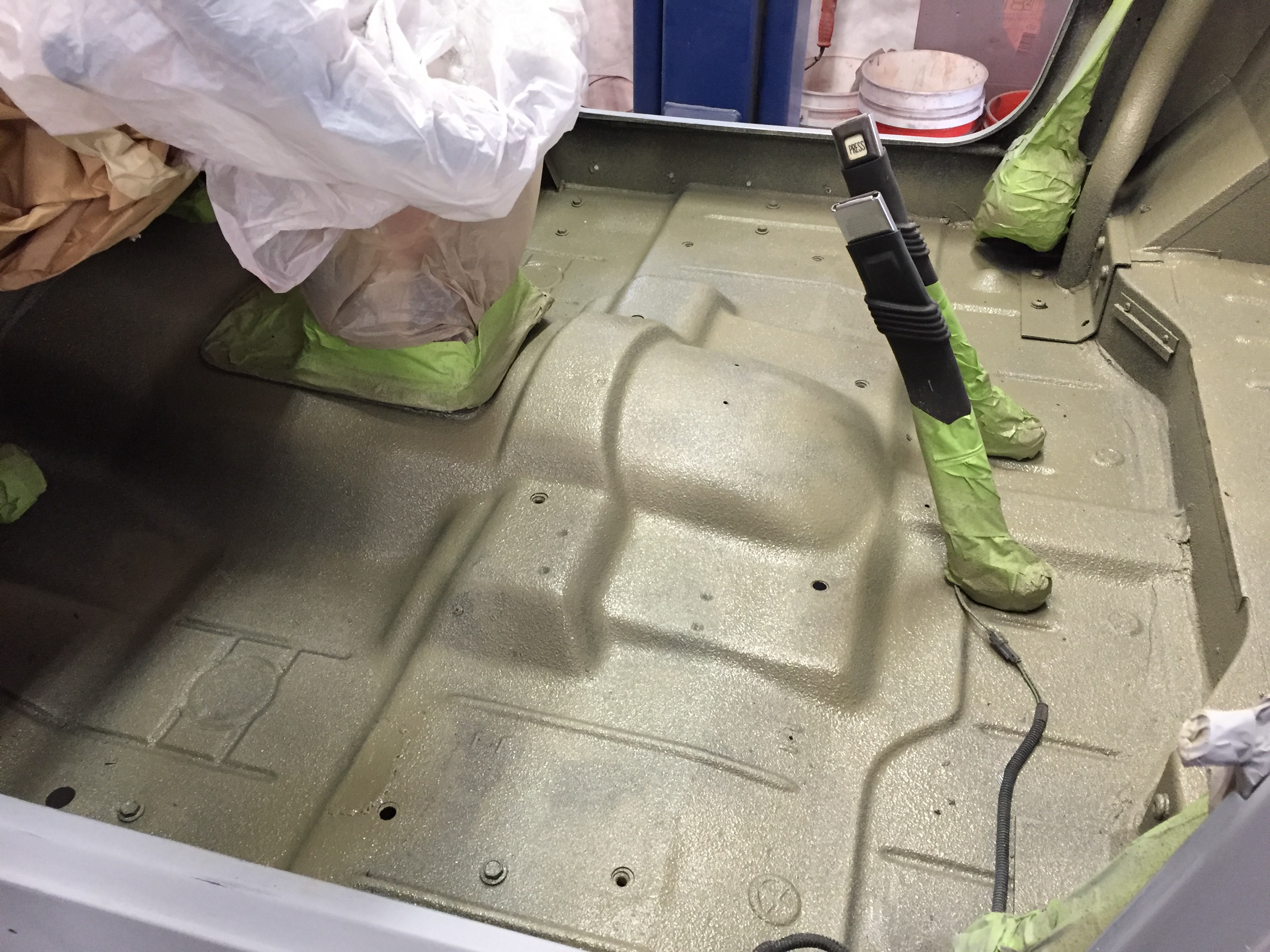 Jeep then gets 4 to 5 coats of sand beige low gloss poly paint,the color is amazing