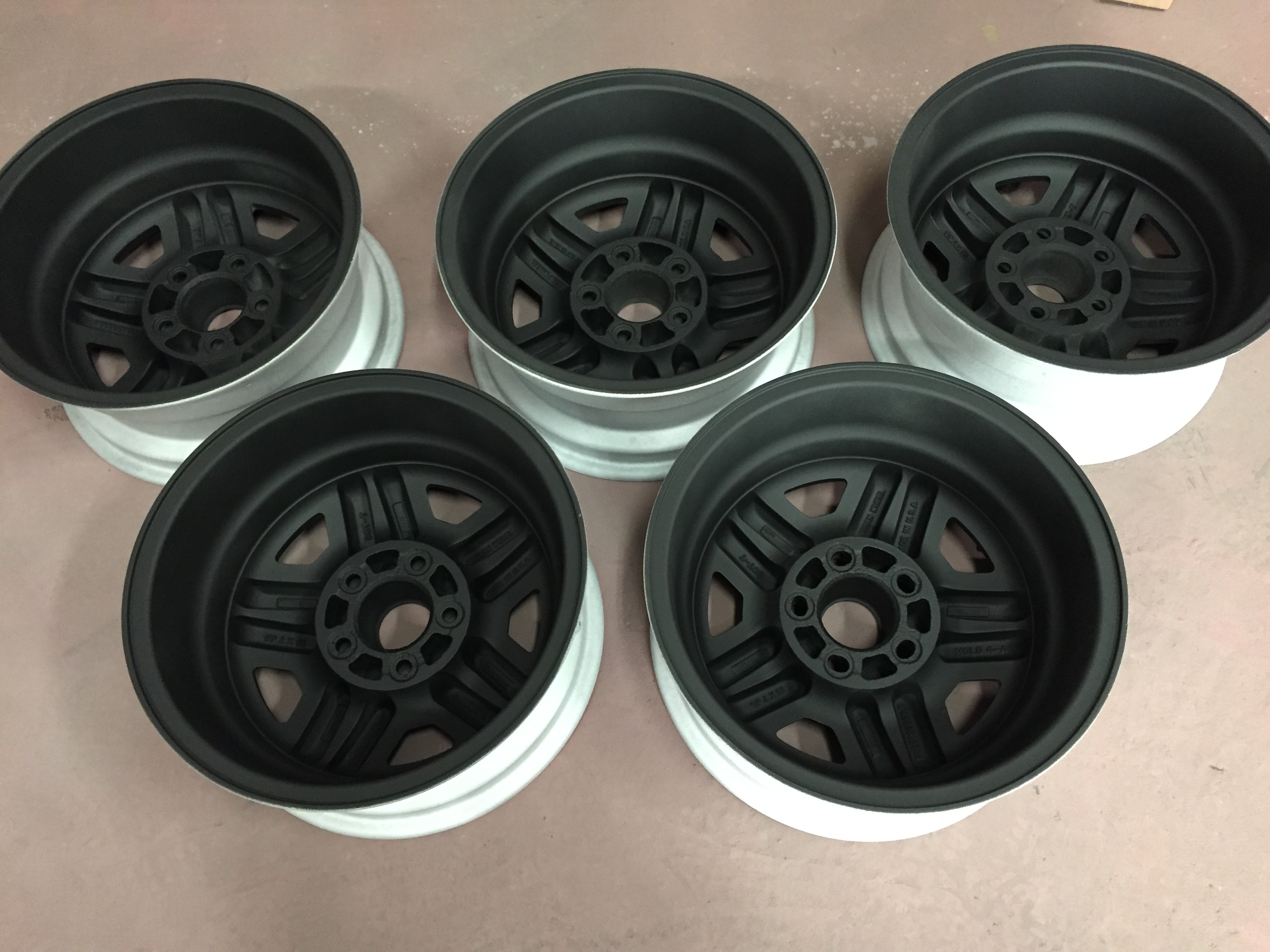 Next came the sandblasting and painting of the wheels inside and out