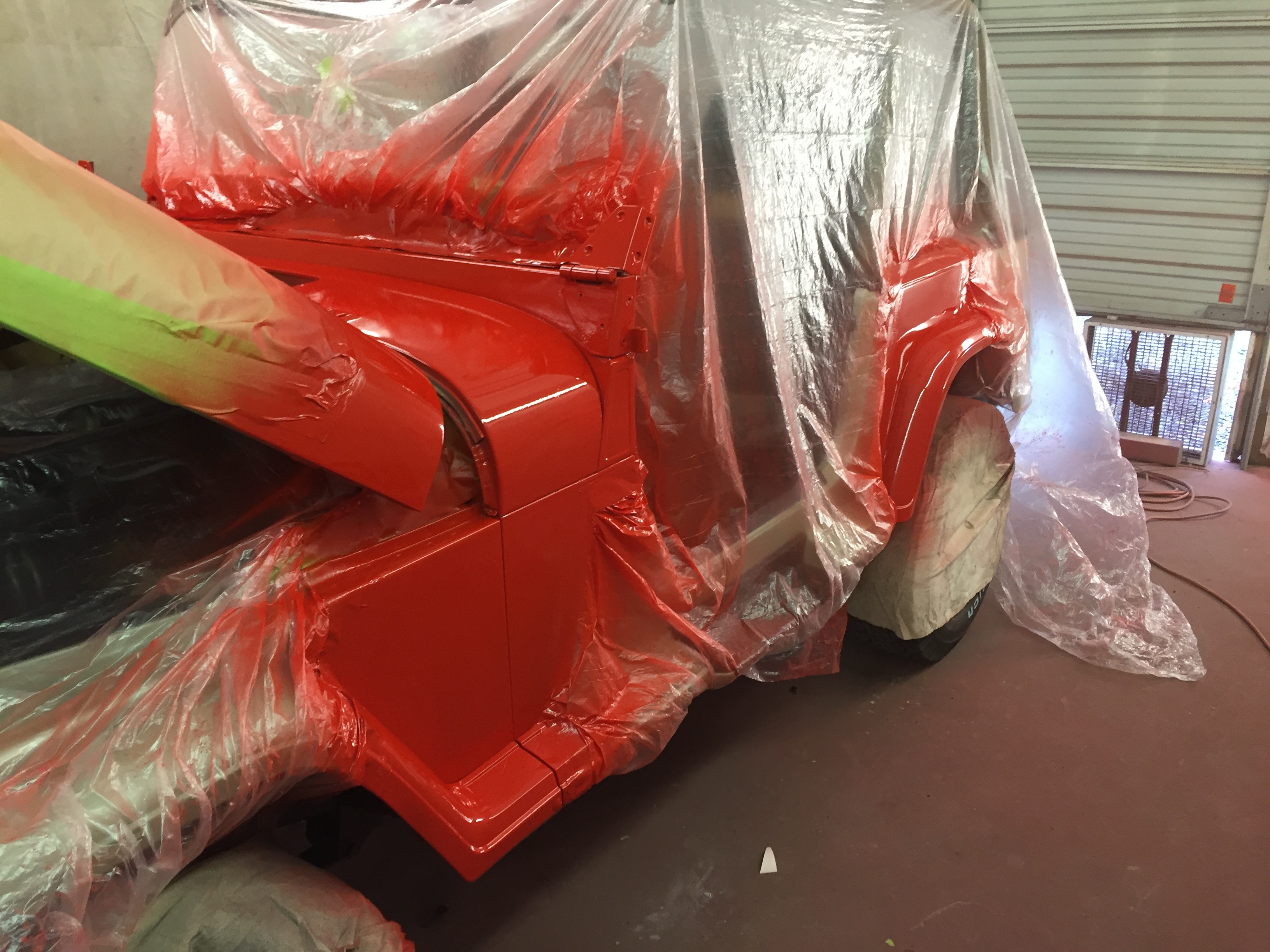 After red is tacky the jeep is unmasked and all paper is removed, the jeep sits overnight and then final reassembly