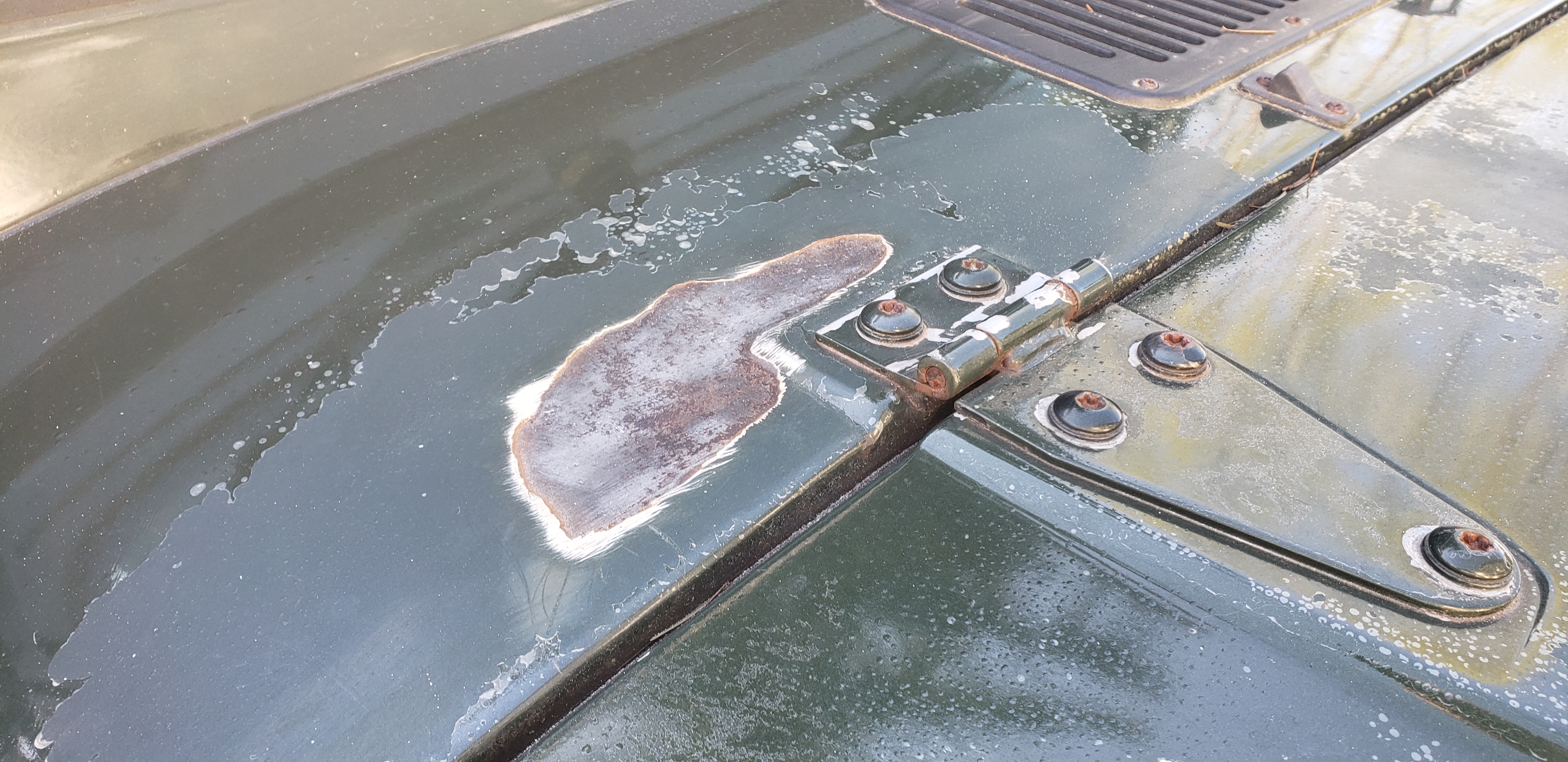 This is a before/after of the biggest rust patch on the body. Since it was so severe looking, I hit it with the wire brush to make sure the damage wasn't too deep or beyond repair. Luckily it looks very salvageable, and will smooth out when I start sanding the whole thing down. (Hopefully next month!)
