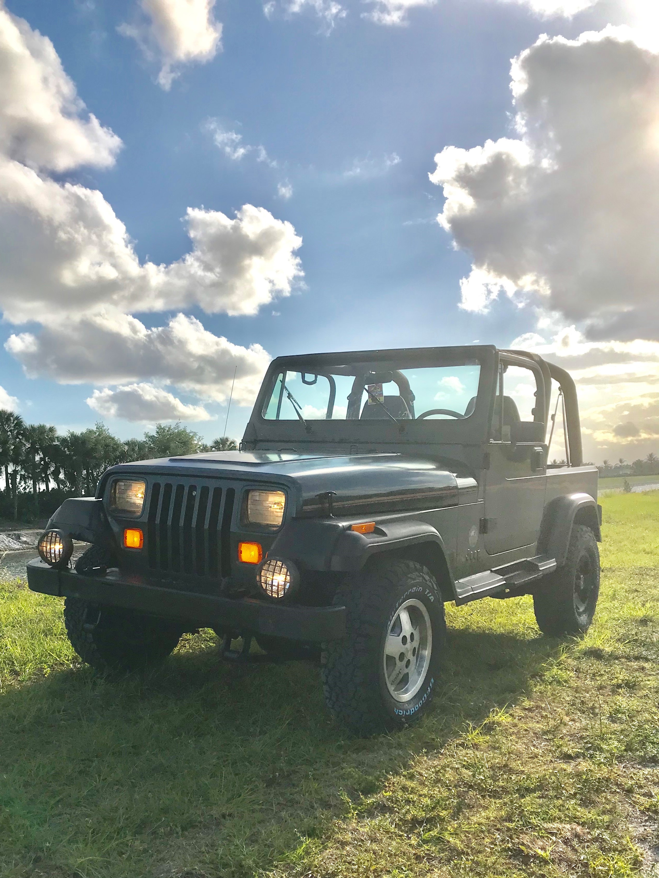 So after 3 years of researching and stalking everyone's build here on the forum i finally found a good base to do my conversion. I located a 93 Sahara with the correct trim with only 105k miles. I was lucky that the previous owner never took the hard top off so the interior was still in amazing shape! After bringing it home, replacing the tires with the BFGoodrich All Terrains i started to acquire the correct parts. I sold the hard top to purchase the soft top and frame, purchased the light bar from Jameisons, acquired half doors and the correct Sahara door panels, got the rims off of Facebook, bought the accurate front fogs and then i luckily found the REP 6000 winch on craigslist! I then restored the door panels and center console with the correct Sherwin Williams paint, then stripped the jeep and started to sand it. My father and i trailered the jeep up to Jacksonville to have the jeep painted by Ocean Spray Paint and Graphics, same painter who painted fellow Motor Pool member Dwight's jeep. Thanks to Dwight for all of the help during the painting process, it was much easier having him there since he had painted his not that long before. After the jeep was painted we brought it back home and i pieced it all back together. It looks absolutely amazing and I'm beyond happy with how everything turned out. I could not have gotten all of this done without the support from my wife and family, but also good friends like Dwight, Vic, and Troy! I love taking it to car shows and events and seeing everyone's faces, always reminds me of why i did this! **Still on the hunt for the Screen Accurate Rear Fogs**
