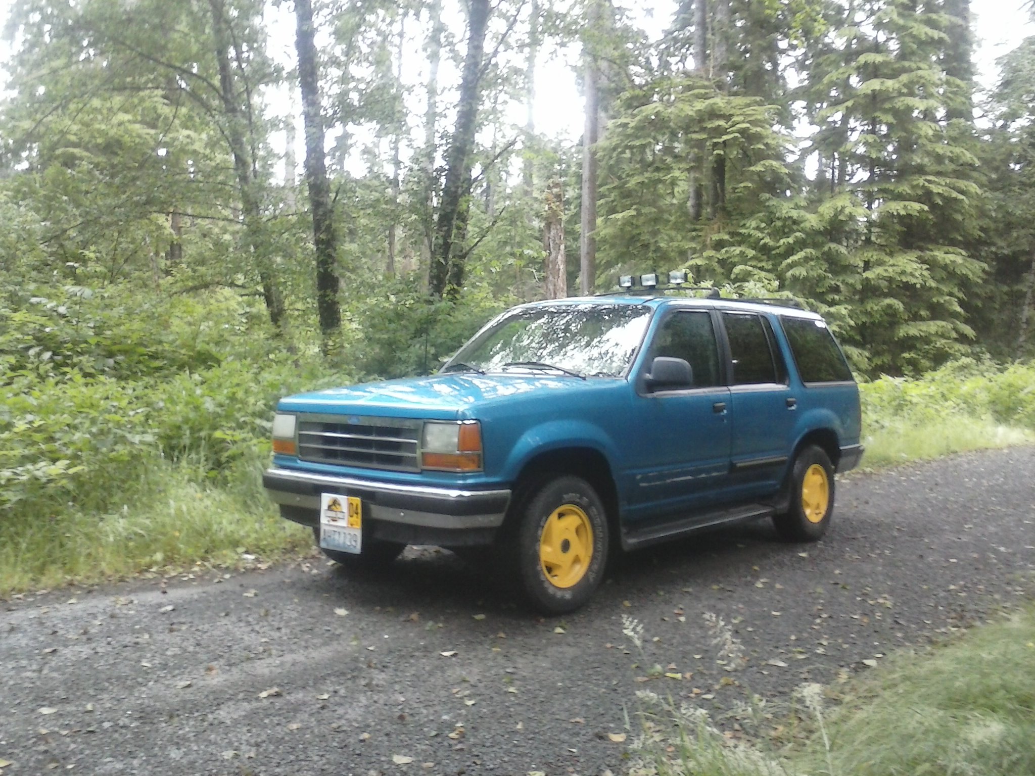 Slow going. Attempted to paint my Explorer, using rattle cans. I Definitely Won't be doing that. EVER. Until I can get a Garage and find some good paint when I move. It'll stay Meadow Green and Black for now. Mounted the Spotlight finally. That's. really difficult to get in and screw it tight.