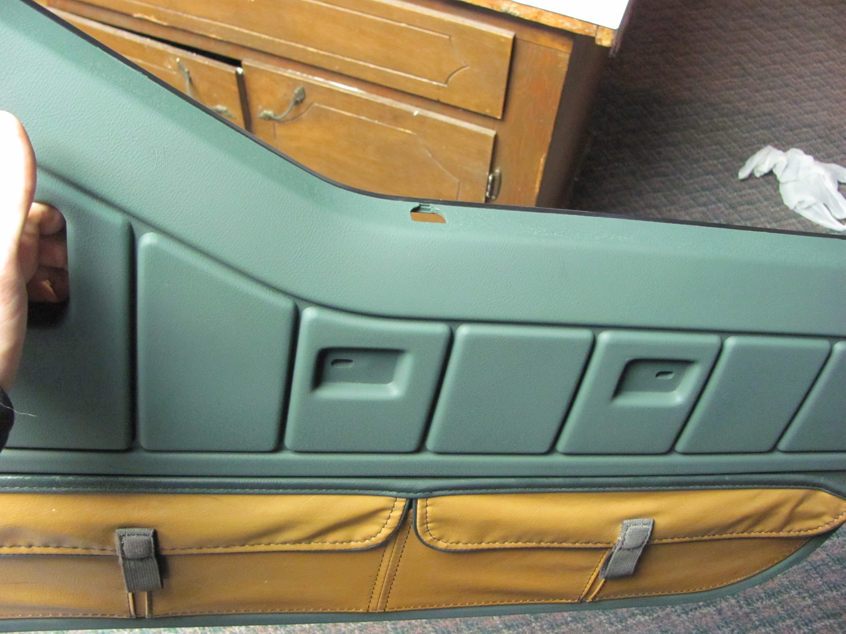 I have not had the time to mess with the fog light issue but i got all the green pieces of the interior done yesterday. I was going to do only the door panels but after seeing the color difference i had to do everything. It works out better to do everything but i kinda wanted it to be the exact color. The problem i think is that the guy that mixed the paint said he always uses the flat additive. You can also use medium and high gloss. When i was spraying the door panels i could not tell where i was painting and where i needed to paint. It is that close but when it dried it turned foggy and much lighter in color. I like the flat look but i think it needs to be at least a medium gloss paint. I didnt want to spend another $30 dollars and the time to drive back to the Oriellys to have another can filled. This only coast me about $40 for both the adhesion promoter and the green so i think this is the best way to do this project, but use at least the medium gloss.