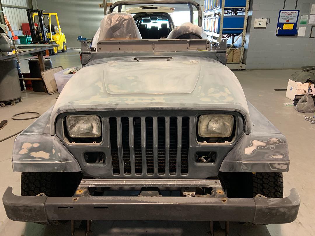 Had a few speed bumps along the way when breaking her down. A couple stubborn bolts either were rusted and didn't want to come off right away, or bolts that wanted to start to strip. Once everything was off the jeep, it took one evening to sand everything down, and another day to lay 3 coats of primer and 3 coats of single stage sand beige on everything.