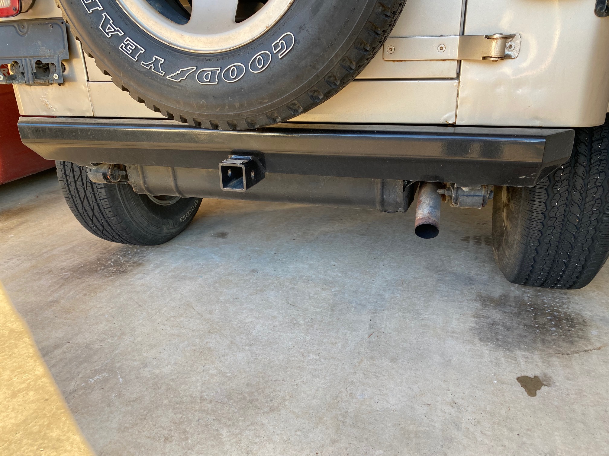 1st order of business... That dam rusty, mangled looking Spare Tire Bumper/Stop..... had pitting, bubbling and corrosion all over it..and seemed like someone ad just sprayed it black..... My OCD couldn't deal with it, so sanded and repainted it (temp job) will get full and complete love when the entire things repainted. Does look much better though.