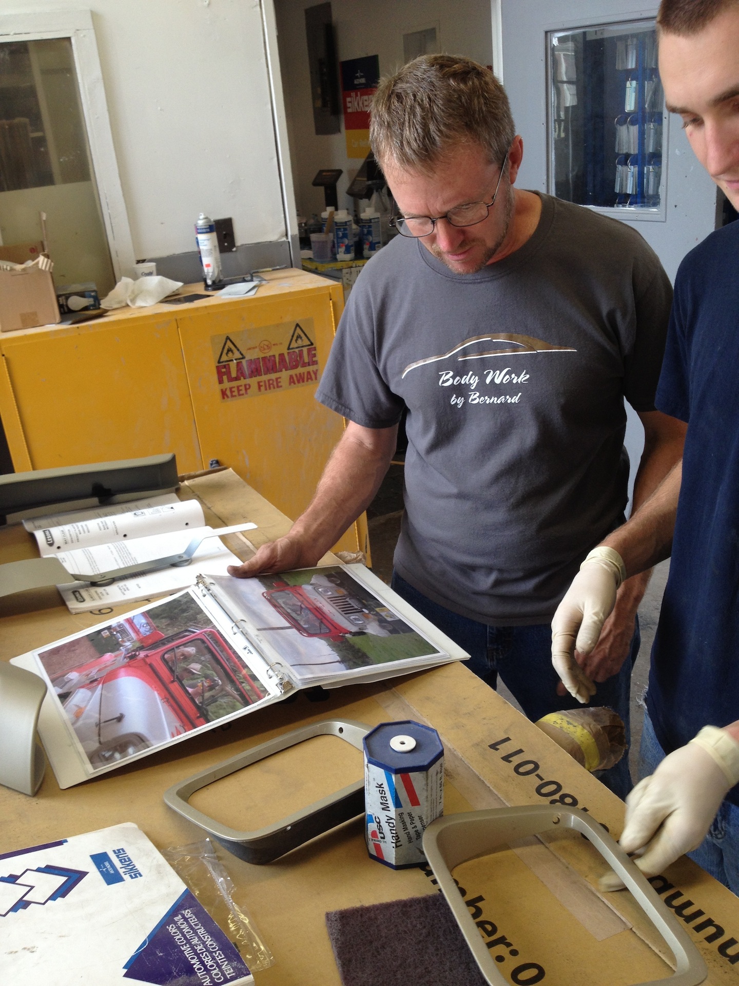 The repairmen are so into this that they are now taking pictures and sending them to me at midnight. How cool is that? Red gets painted tommorow with numbering and hood stencil. All ordered from Ratrace