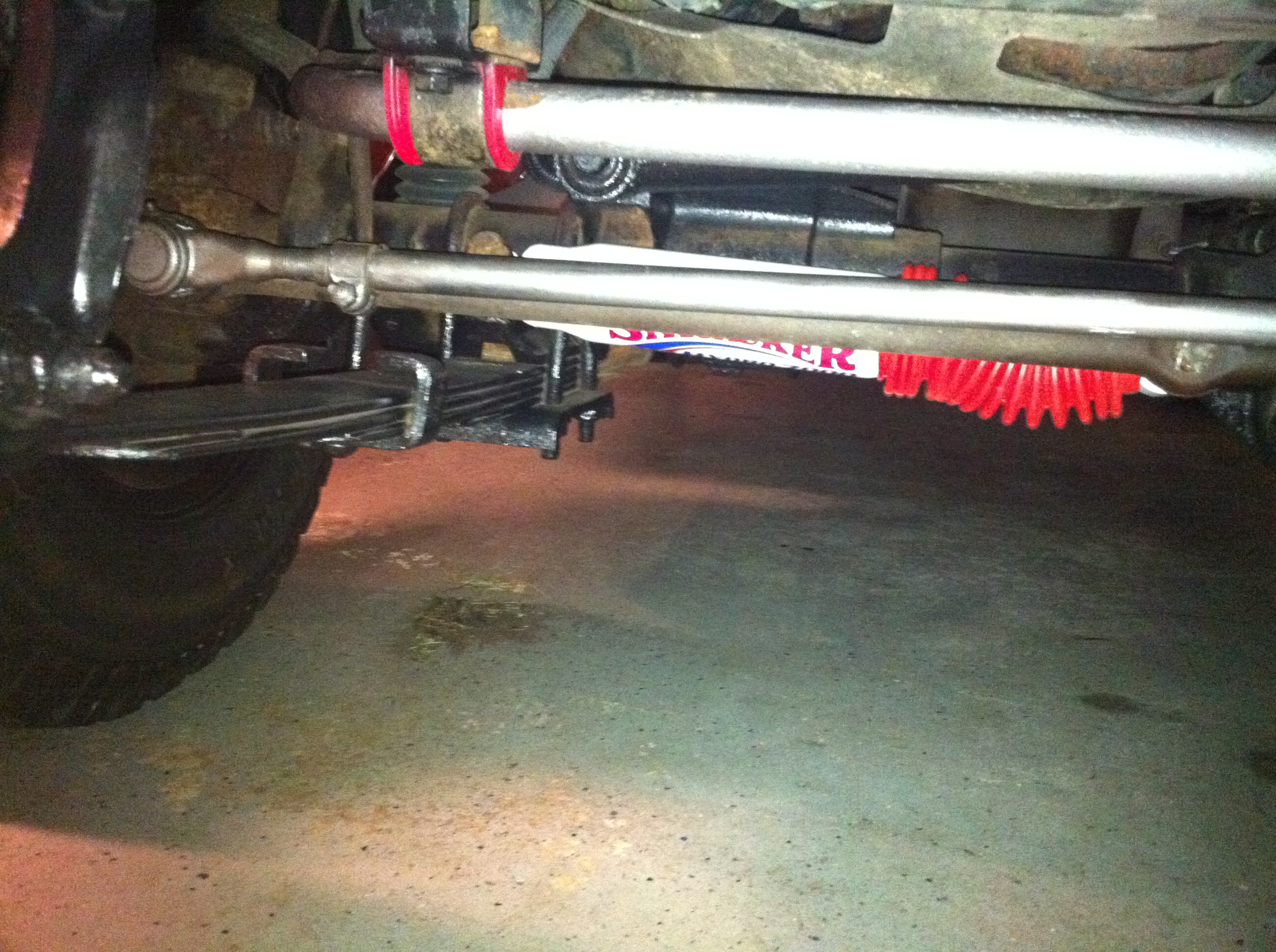 Tonight, I cleaned the whole front end, painted the sway bar, and added polyurathne bushings. Also installed an upgraded steering dampener, all in red accents to go with the Jurassic Park theme.
