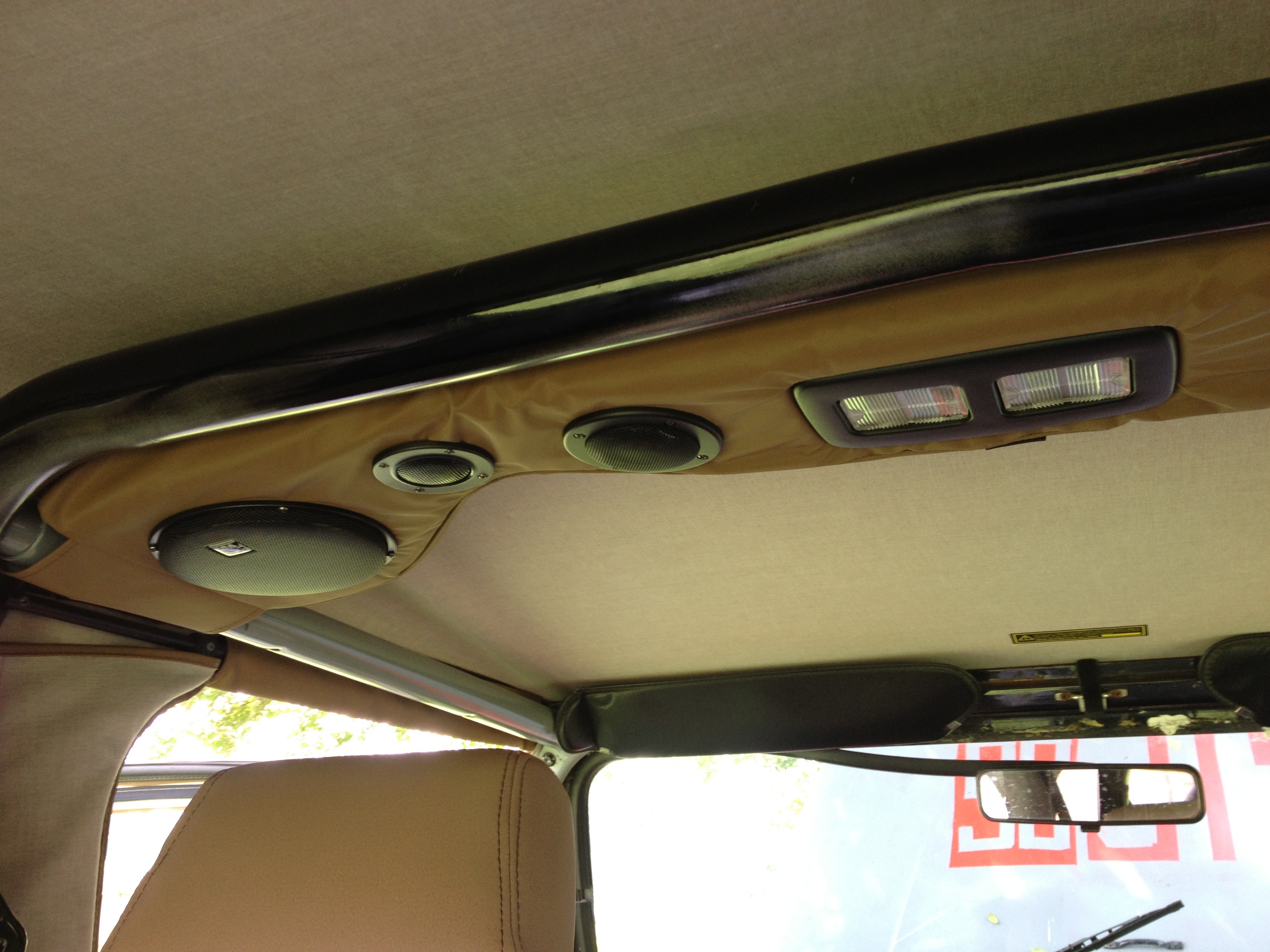 The sound bar is bolted to the roll bars that extent to the windshield and has a flap that covers them up. The sound quality is great for what it is but I wouldn't crank up the tunes to loud I fear it might blow the speakers. I got mine from eBay for 211 free shipping but its also available from quadratec,Morris 4x4 center, and extreme terrain. It's called VDP high fidelity 6 speaker sound bar. That should cover it enjoy