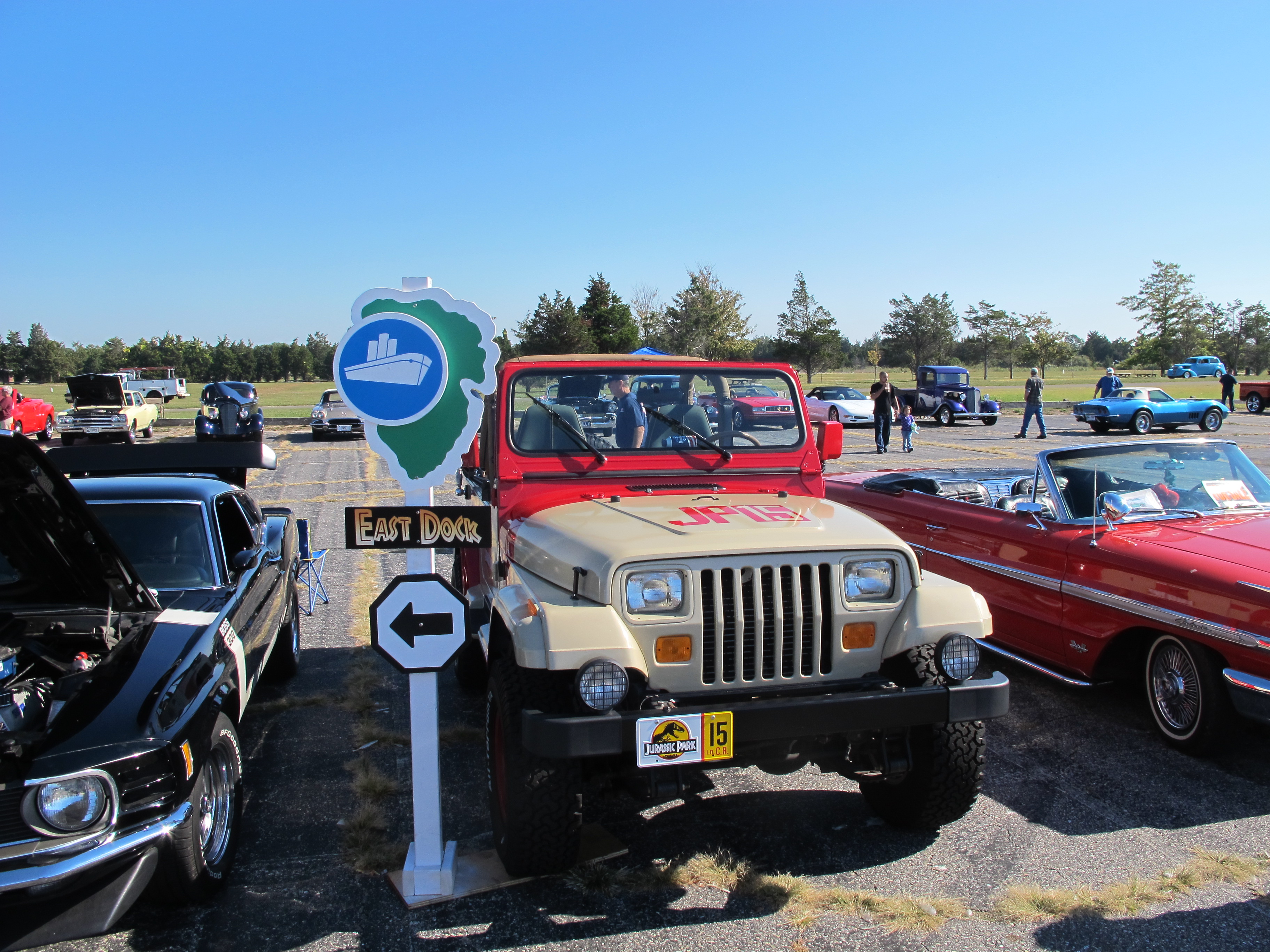 Went to another car show today. No awards were given out (not that I would have won), but it was at a beach my wife and I were going to go to anyways. I spent the prior two nights finishing off the East Dock sign I started months ago. I think some of the paint was still wet when I left for the show. The majority of the cars were pre 1970's American classics. This was kind of the crowd that thinks any car built after 1965 isn't worthy of being shown off. Anyways, here's a pic of my Jeep there. I was a tad scared the sign was going to fall over onto my neighbor's Boss 302