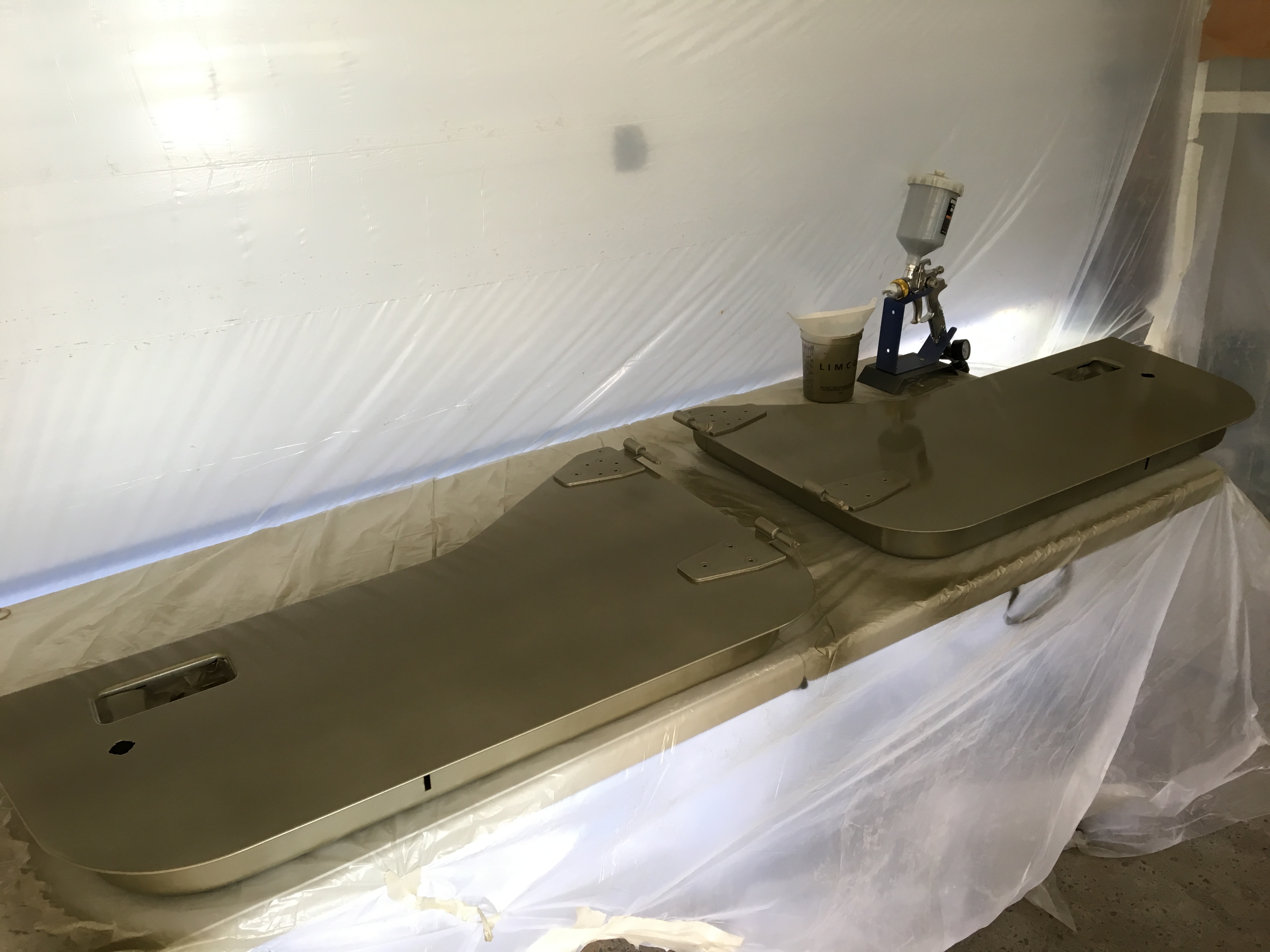 Another update. Over the past week I've been working on significant amounts of prep work. Repairing minor dings, dents, surface corrosion, etc. I'm at post Sand Beige Poly BC, and pre-red BC. Most forums recommend waiting 1-3 hours (varies by paint type, humidity and temperature) before taping for stripes. I'm currently running a heater in the garage and will play it safe with a 3-4 hour wait. I'd rather not have to repaint due to impatience.