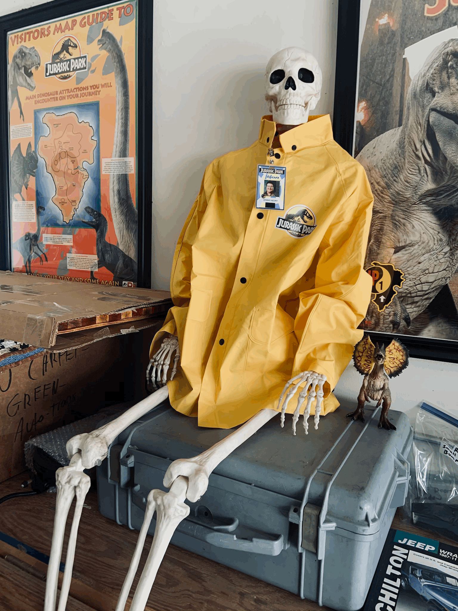 Dennis Nedry prop coming together. I still would like to find some semi accurate pants and shirt, and maybe a Casio watch. Got the Raincoat from 401Graphics which can be found on the Jurassic Park Motor Pool Reference section.