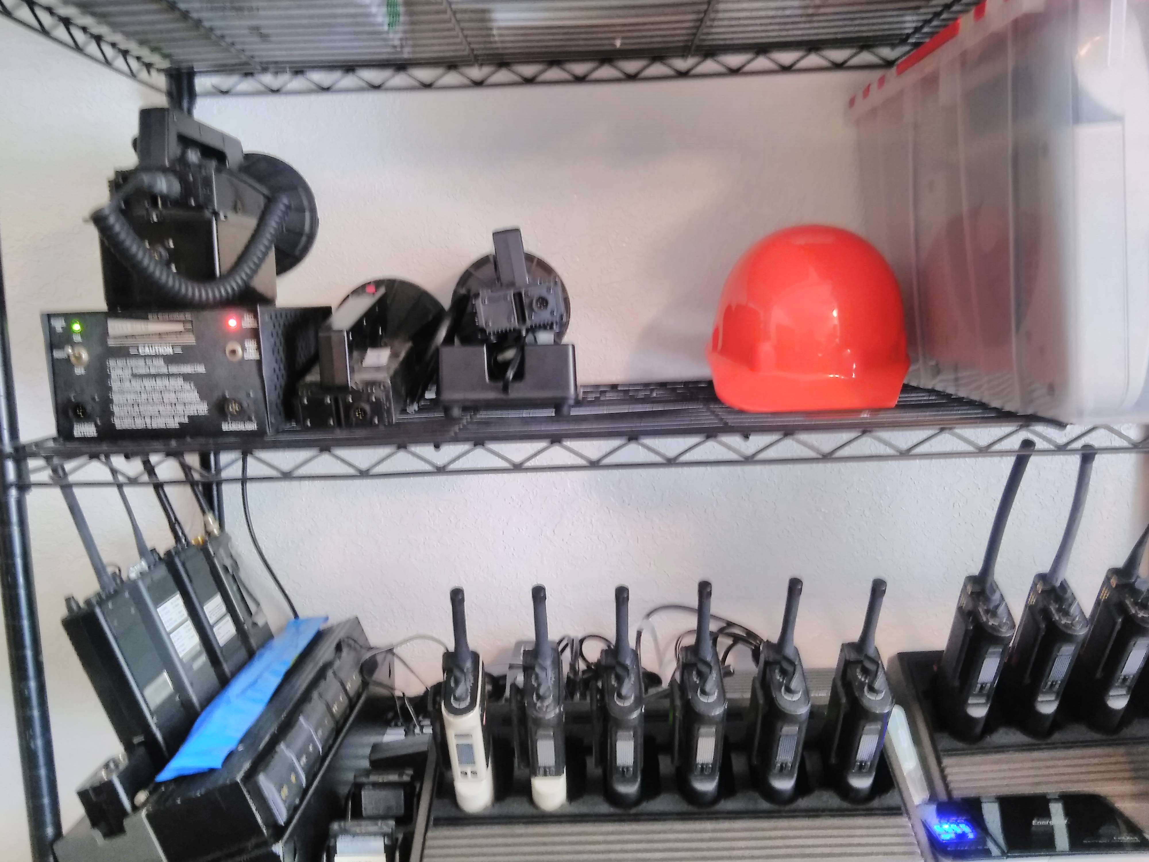 All of those Saber radios do work and they are all programmed with various Amateur Radio and GMRS freqs. (My wife and I are both licensed to use them). They are 95% screen accurate and I have a total of 7 with one of them just out of the pic in the other Saber multigang charger to the right that holds four other Sabers (Systems Saber, 2-VHF and 2-UHF). Systems Sabers are similar but different and are primarily for different types of radio systems and have more channels.