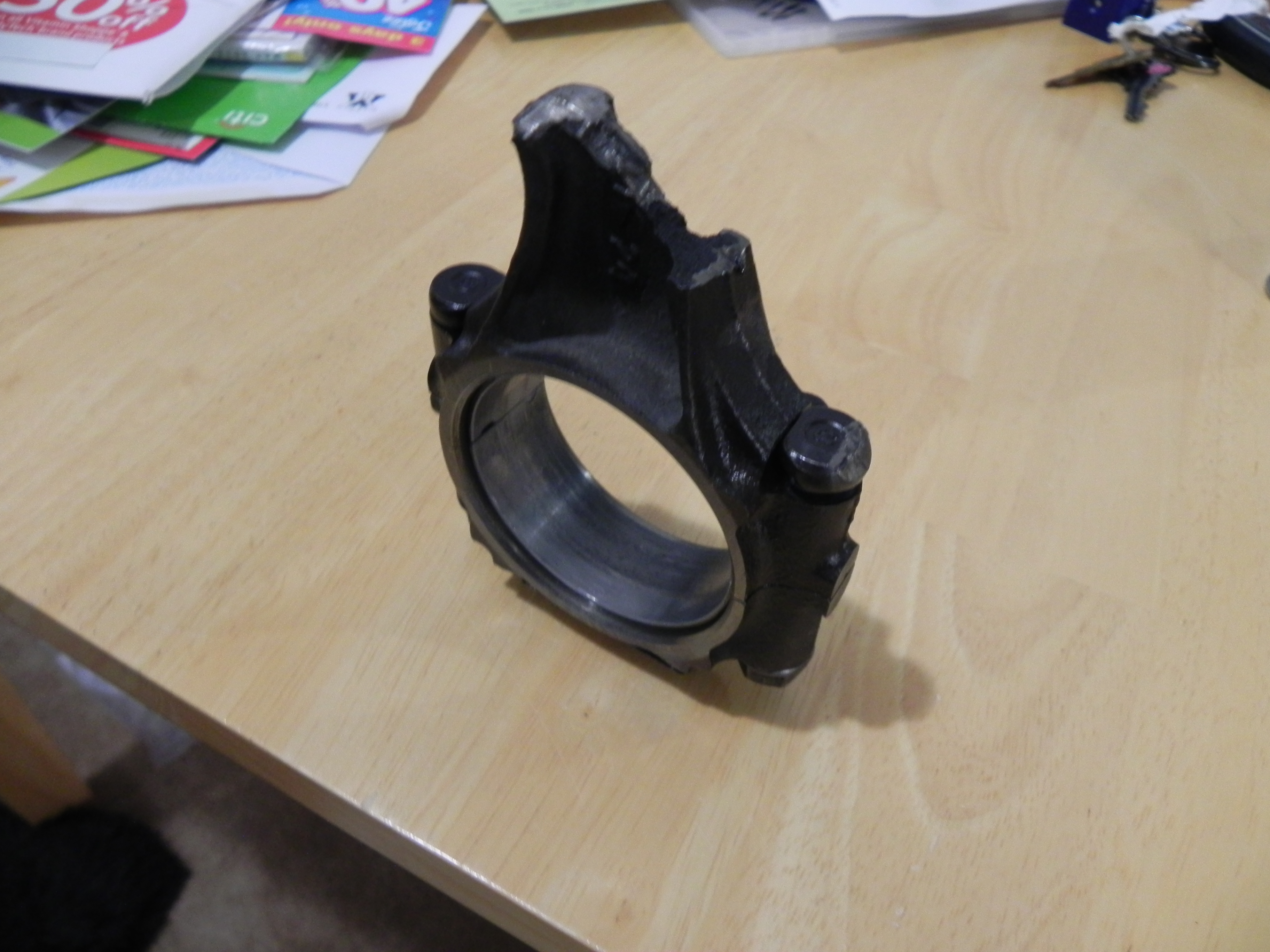 been to the shop every day after school and befor work and its almost done but we know what happened to the engine. when we took it out we found another hole in the oil pan and then a part of my piston it looks like it cracked and was just waiting to blow. along with that the oil pums was only held in with one screw