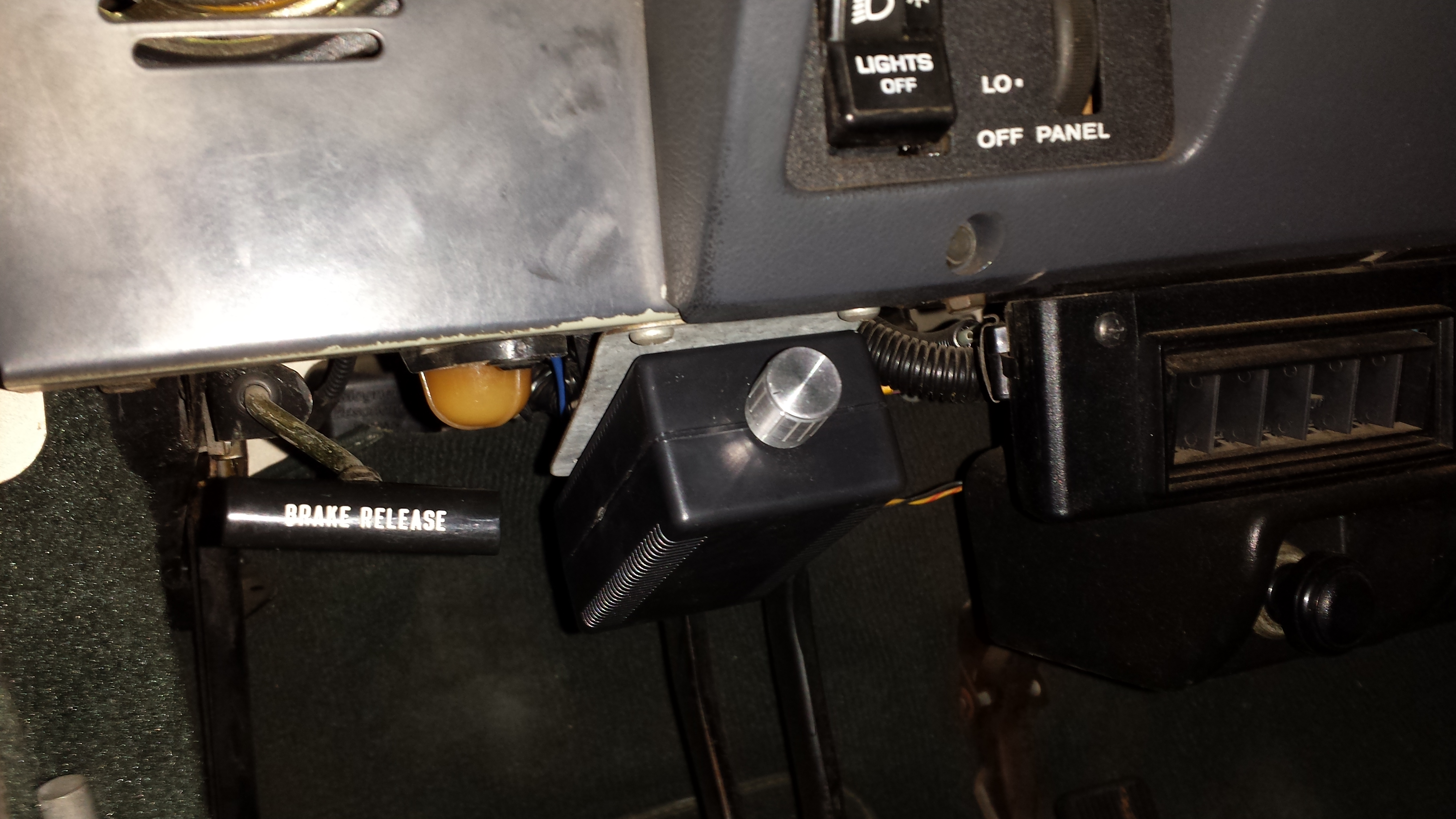 I wired the main power wire from the relay, to the dimmer, and then to the lamps. It worked great and I am able to dim them down to where they are illuminated to where they are no brighter than the tail lights. I have included pictures to show how it looks. As you can see the dimmer switch is mounted to the plate that also holds your wiper control module. I had to bend my plate a little for it to work, but I think someone had bent it down prior to me owning the Jeep. Blends in well and is hardly noticeable.