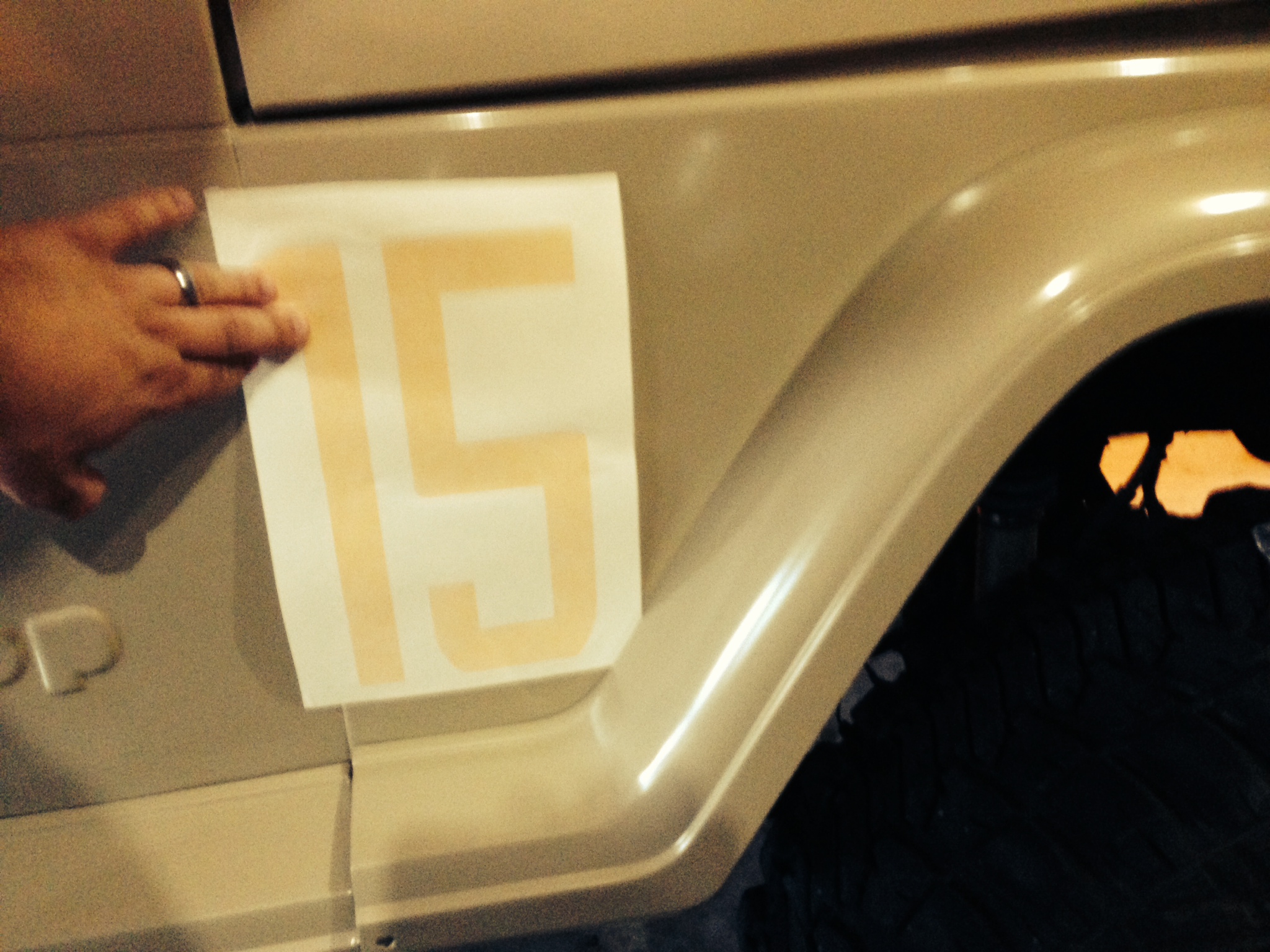 Dry fitting the hood and side number stencils. This is the first time I actually looked at them and measured them. I went about an inch larger than what was recommended for the hood and am happy with the size. The side numbers are 10" tall.