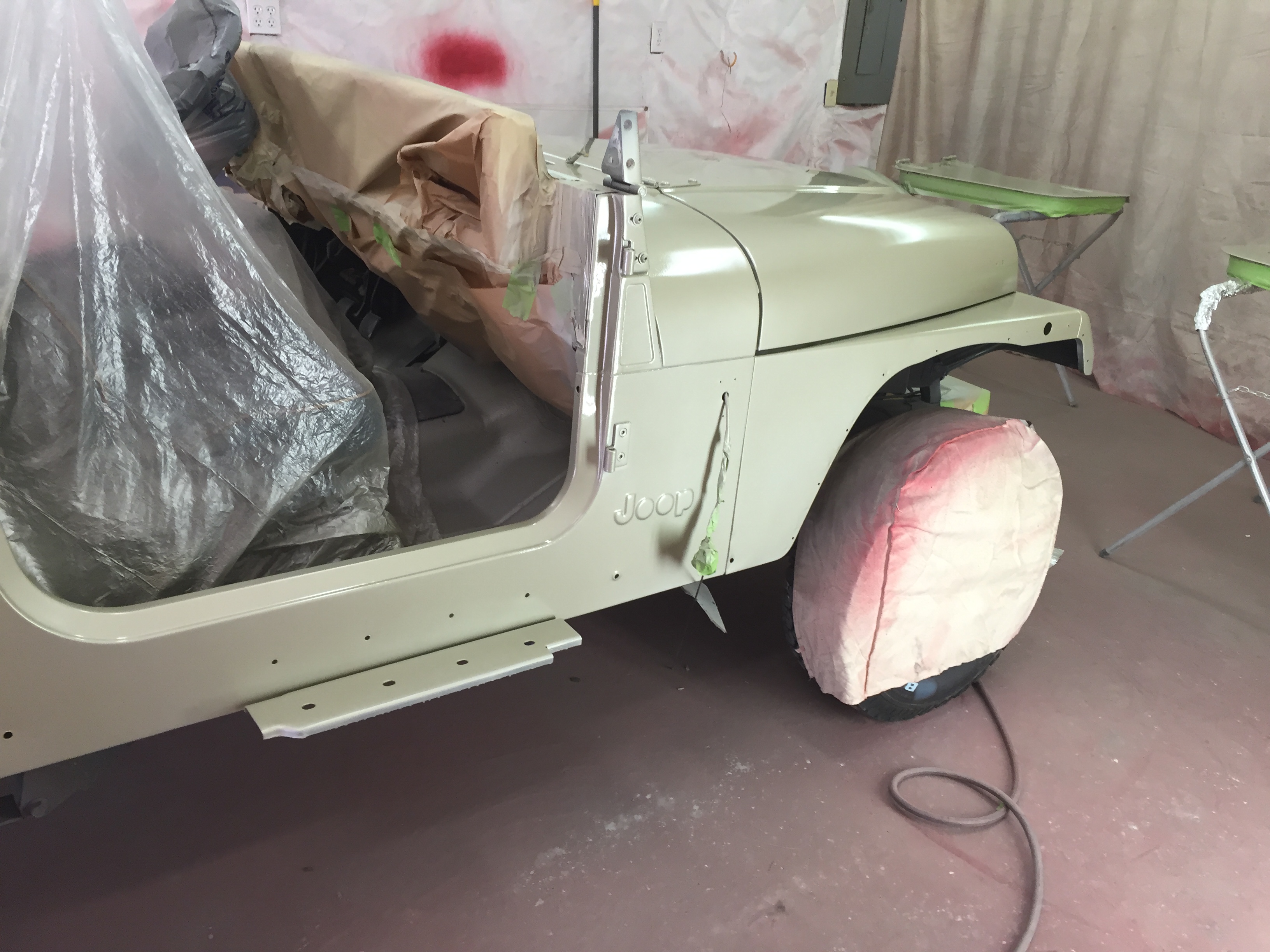 Jeep then gets 4 to 5 coats of sand beige low gloss poly paint,the color is amazing