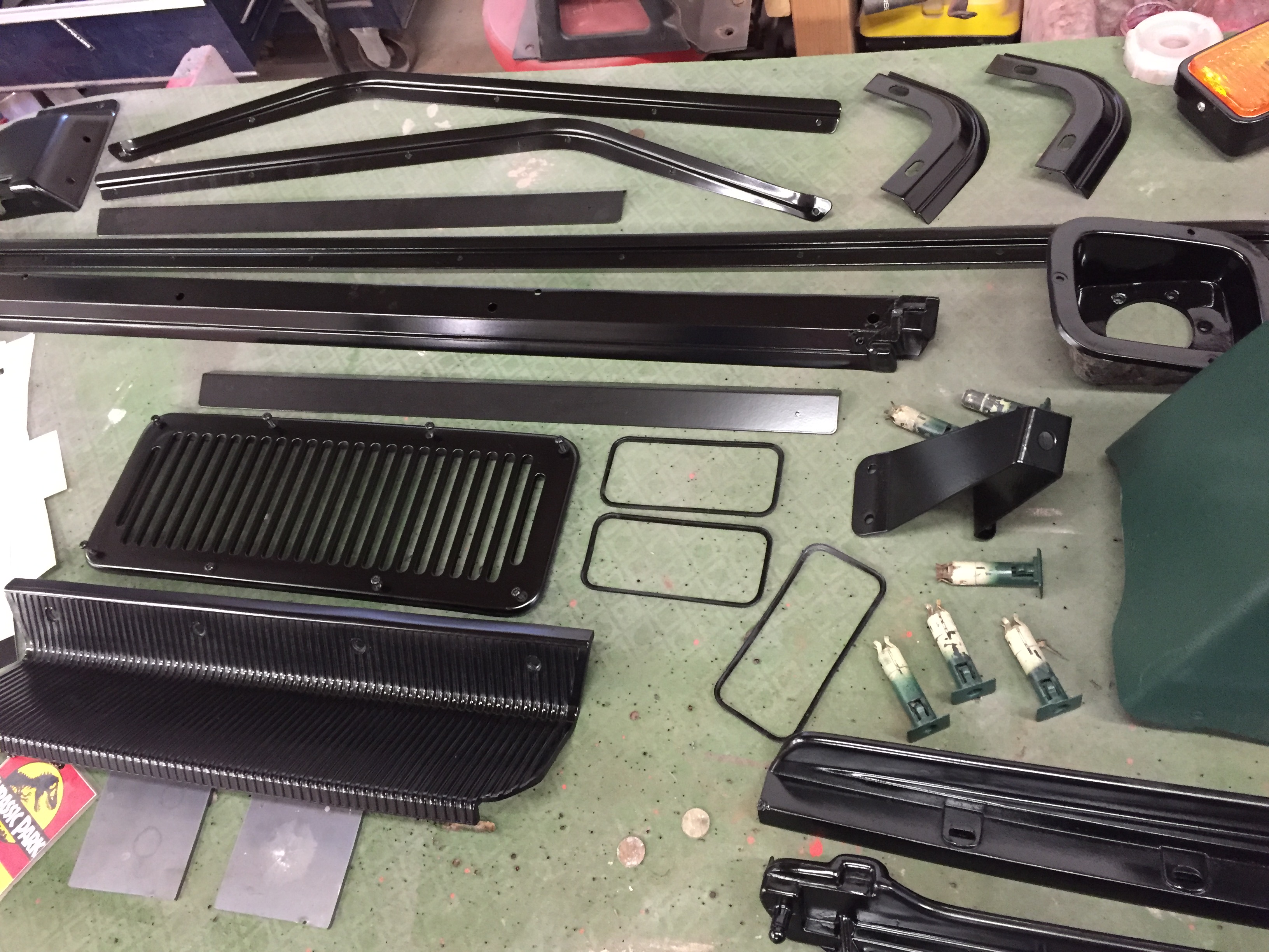 At this point the jeeps trim parts are sanded and repainted a nice semi-gloss black to match they way they came new and installed