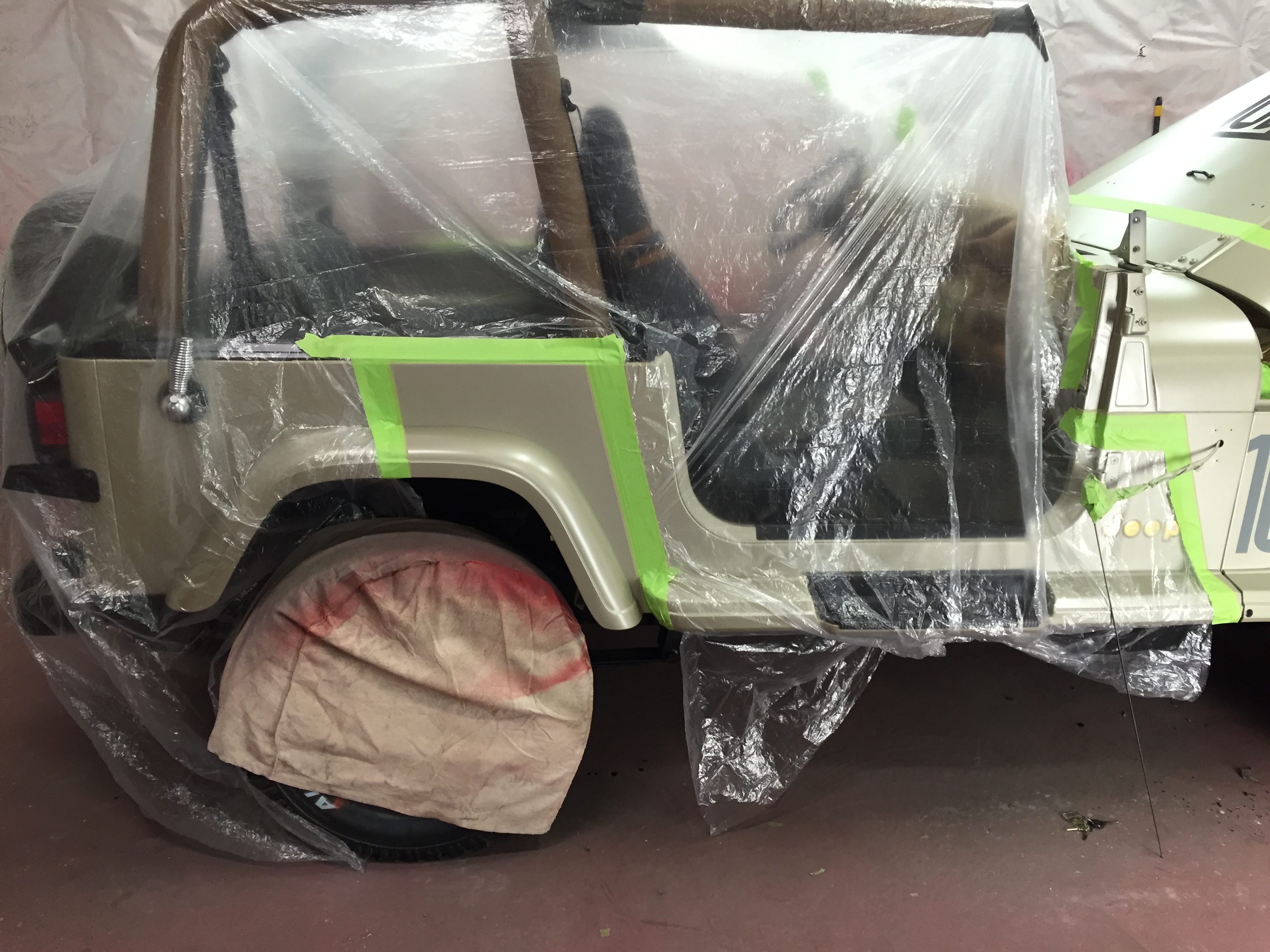 Once the jeep is back together the entire jeep gets masked off again so the stripes can get painted on